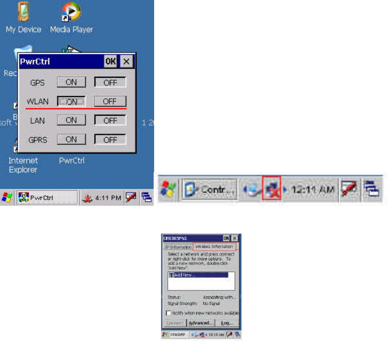 1. Start from “PwrCtrl”, and chose WLAN “ON” . Then, Click on the WIFI