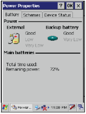 2.Thebatterymenuitemdisplaysthestatusofthemainandbackupbatteries.