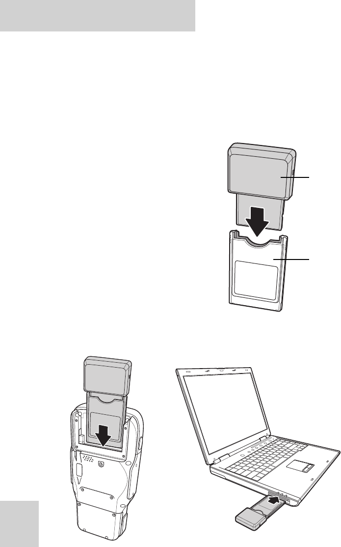 2. Insert the RF1100 RFID reader into the CF or PCMCIA (via
