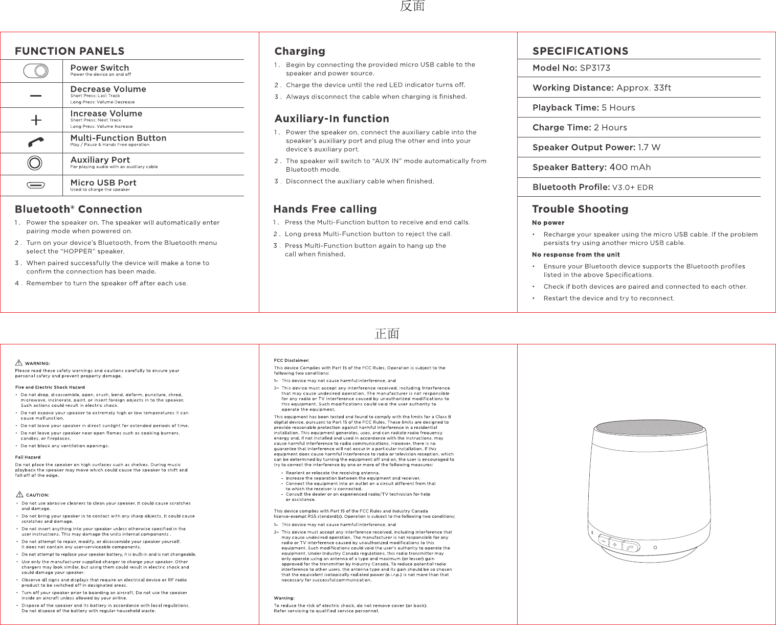 ACADIA ELECTRONIC JP138 Bluetooth Speaker User Manual SP3173 Pkg Manual Rev1 OL 6 18