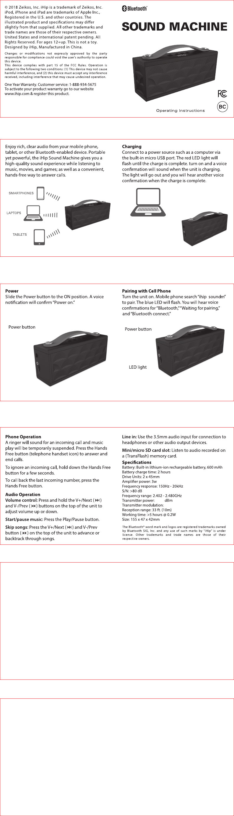 ACADIA ELECTRONIC JP468 Bluetooth Speaker User Manual