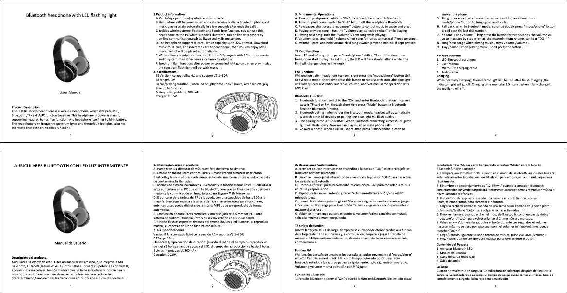 ACADIA ELECTRONIC JP738 Bluetooth Headphone With LED Flashing Light User Manual