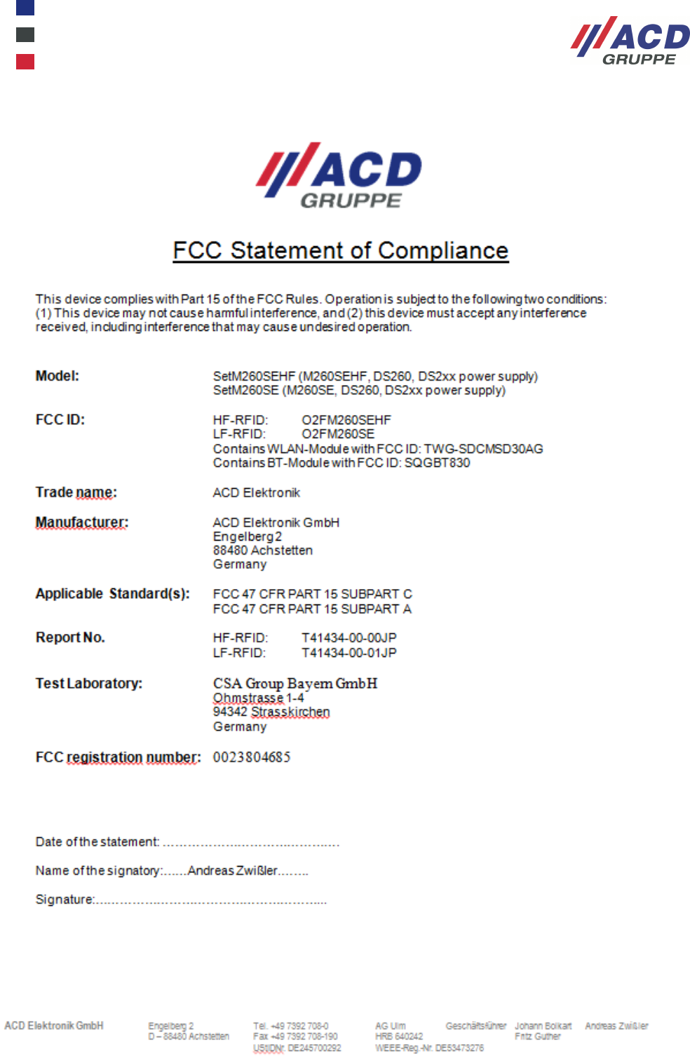 ACD Elektronik GmbH Mobile Terminal M260SE With Docking Station DS260 Users manual