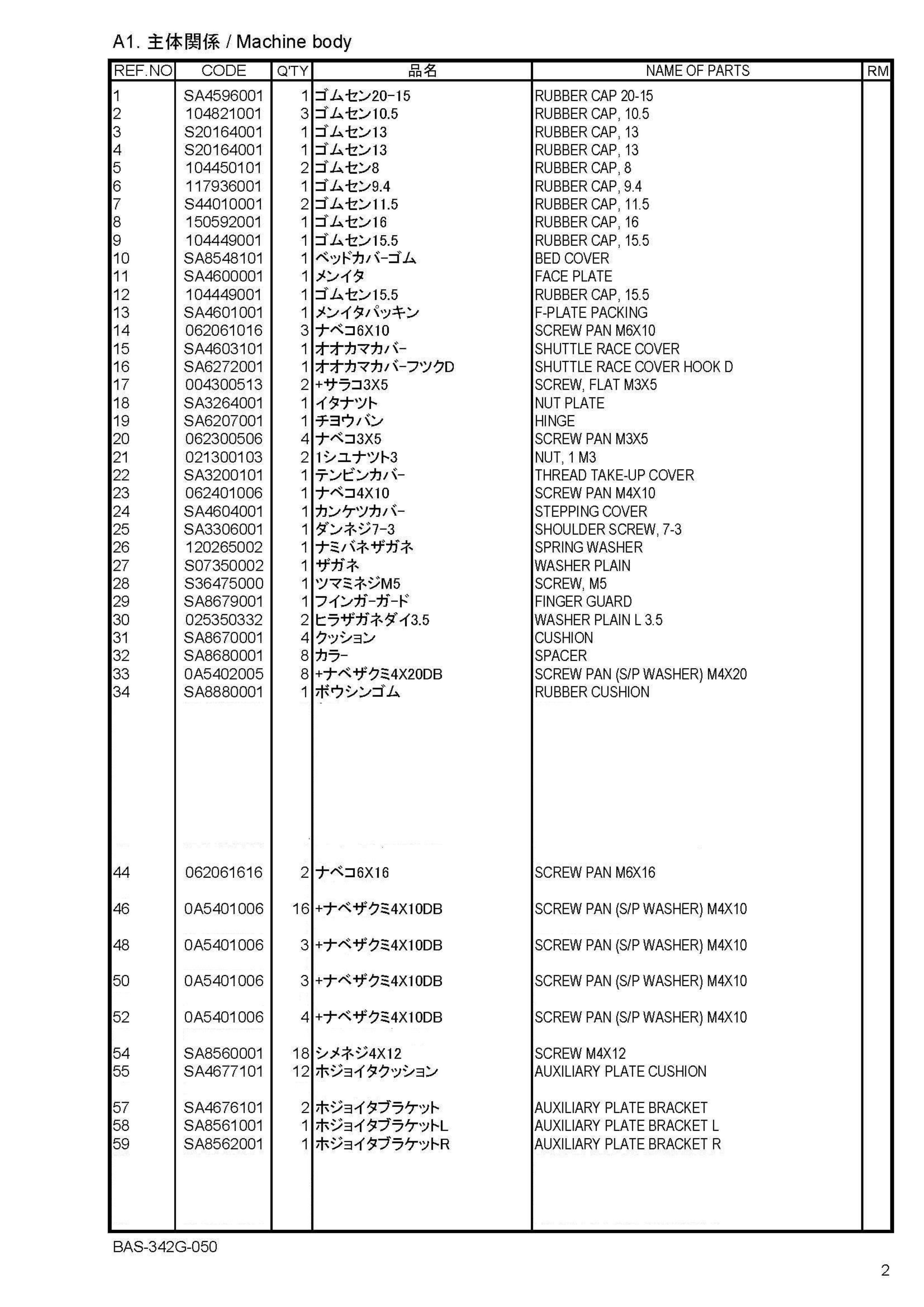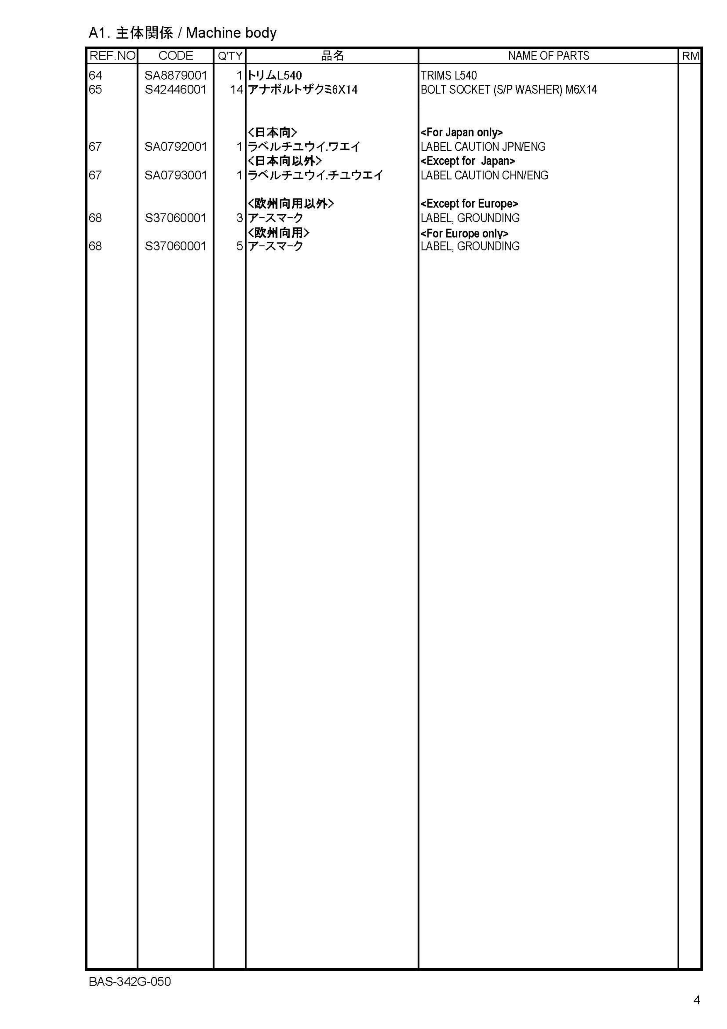 ACE&EASTMAN Bas 342Gxl Parts Book BAS342G_PB_JE User Manual