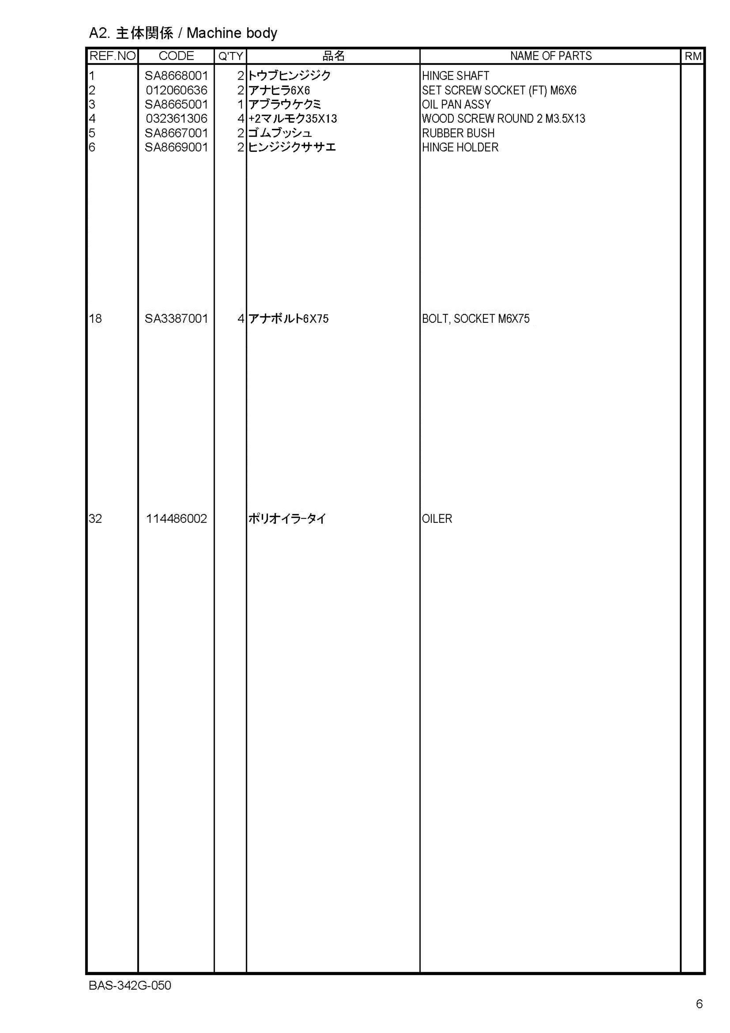 REF.NO CODE Q'TY NAME OF PARTS RM