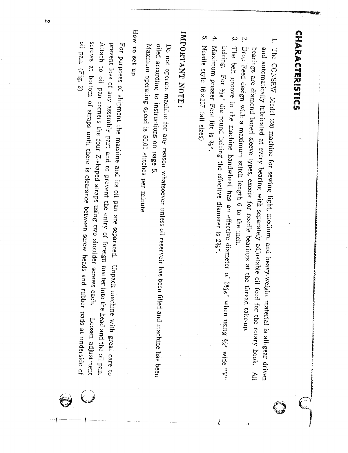 ACE&EASTMAN Consew 220 Instruction Manual User