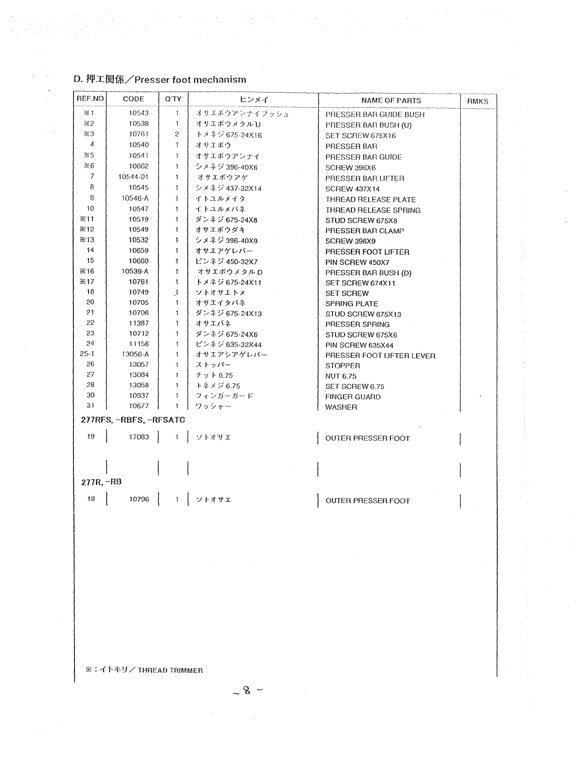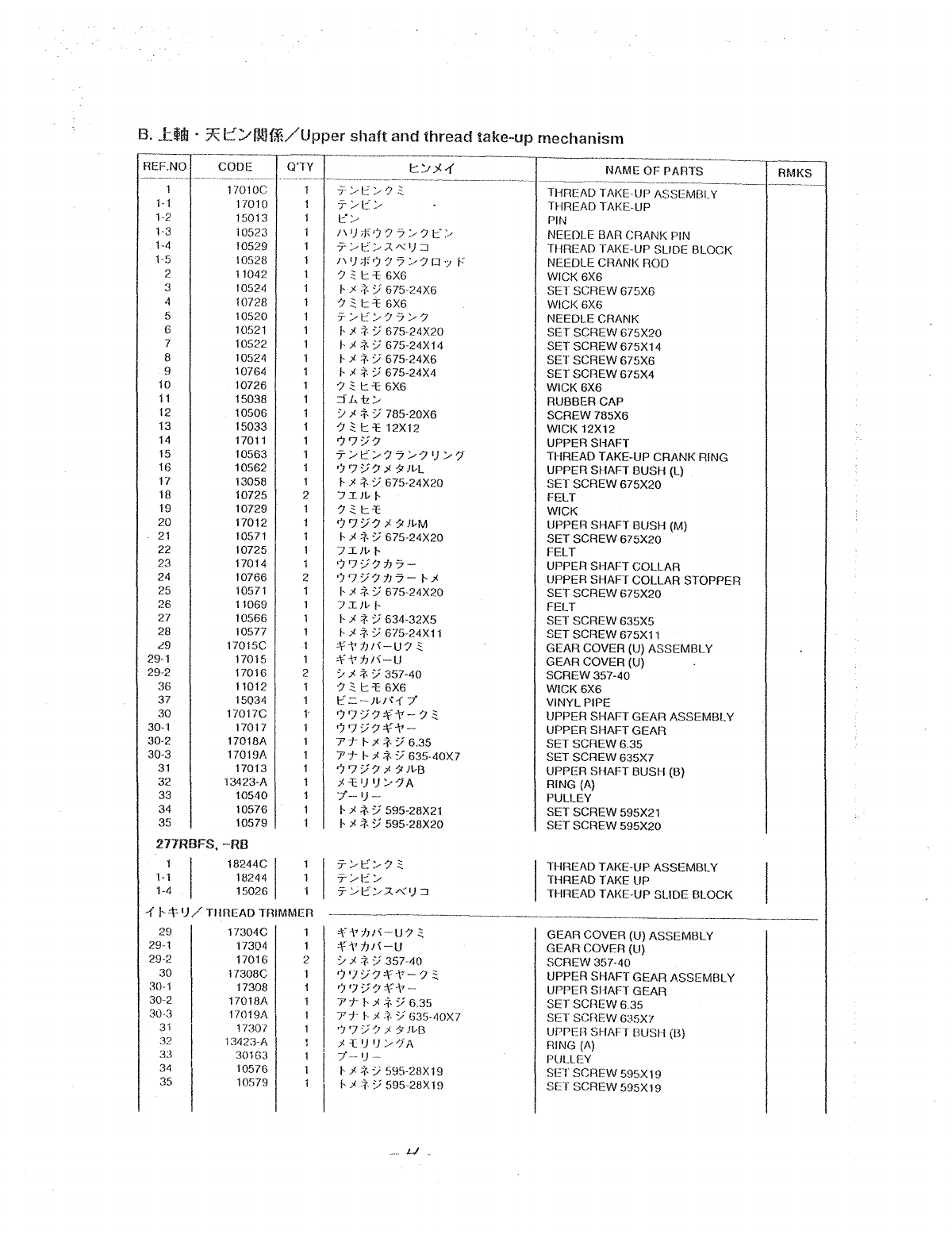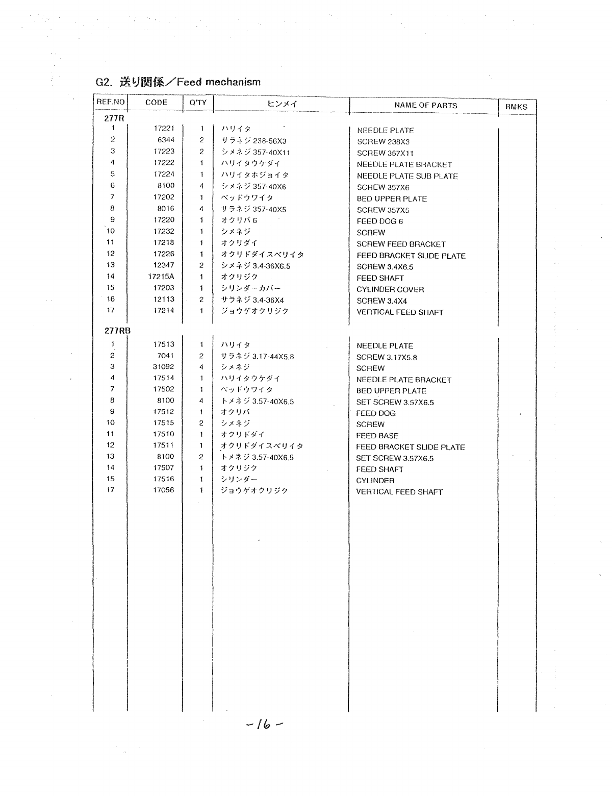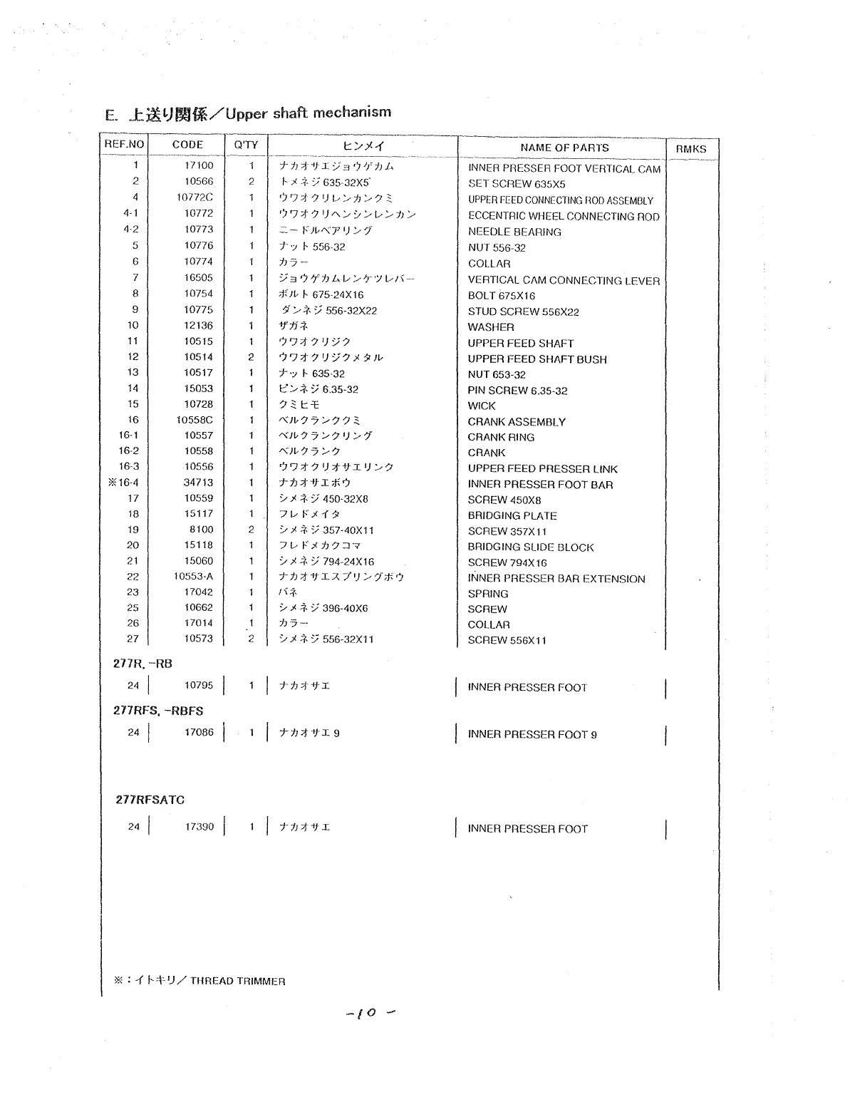 User Manual: ACE&EASTMAN Consew 277R Parts Book