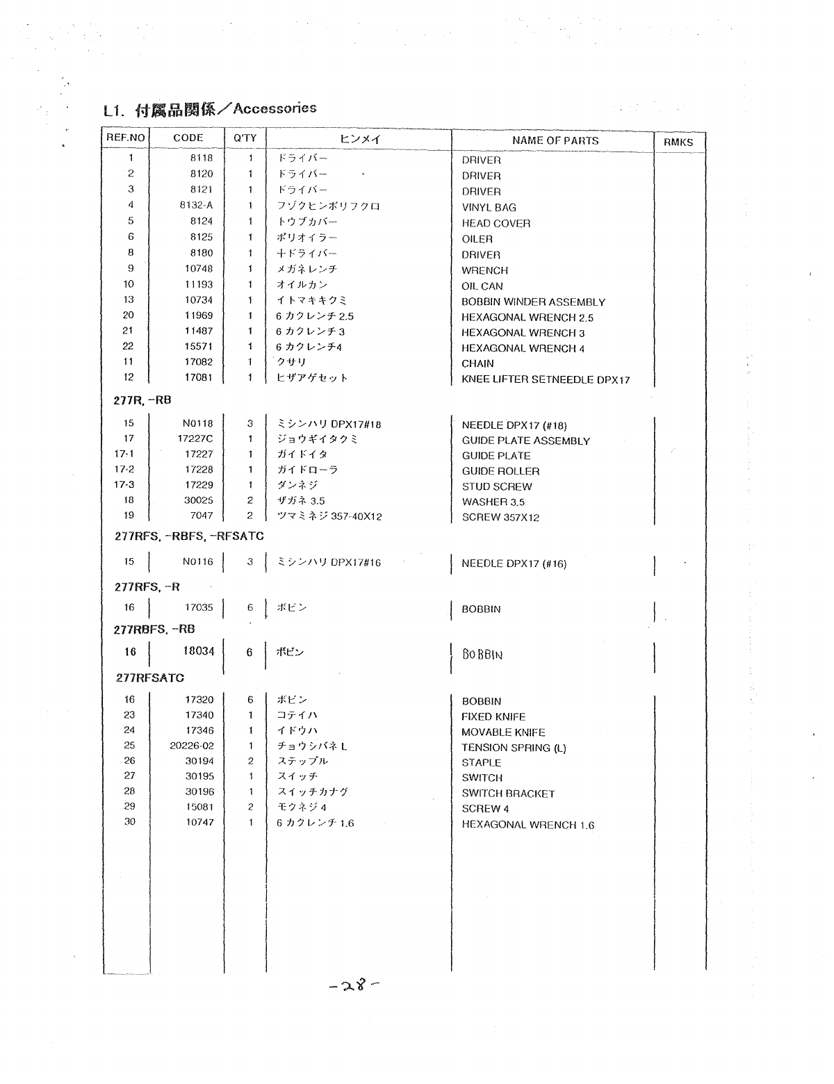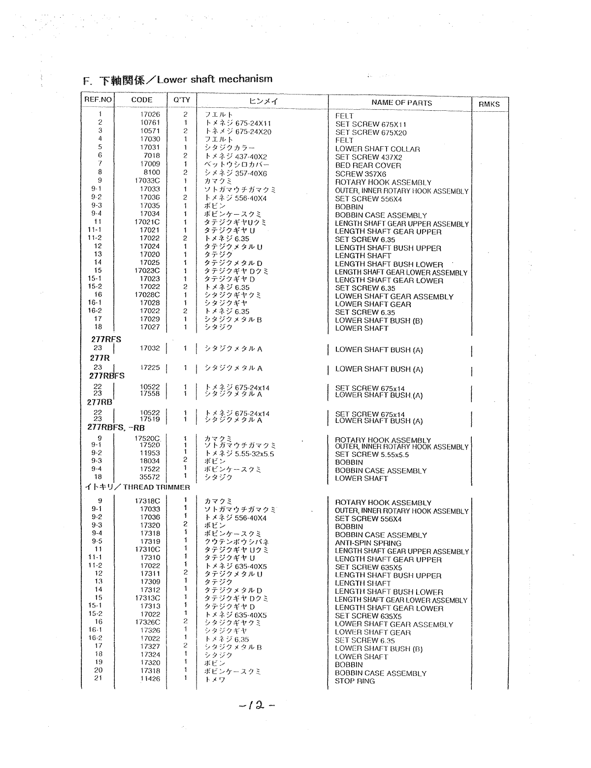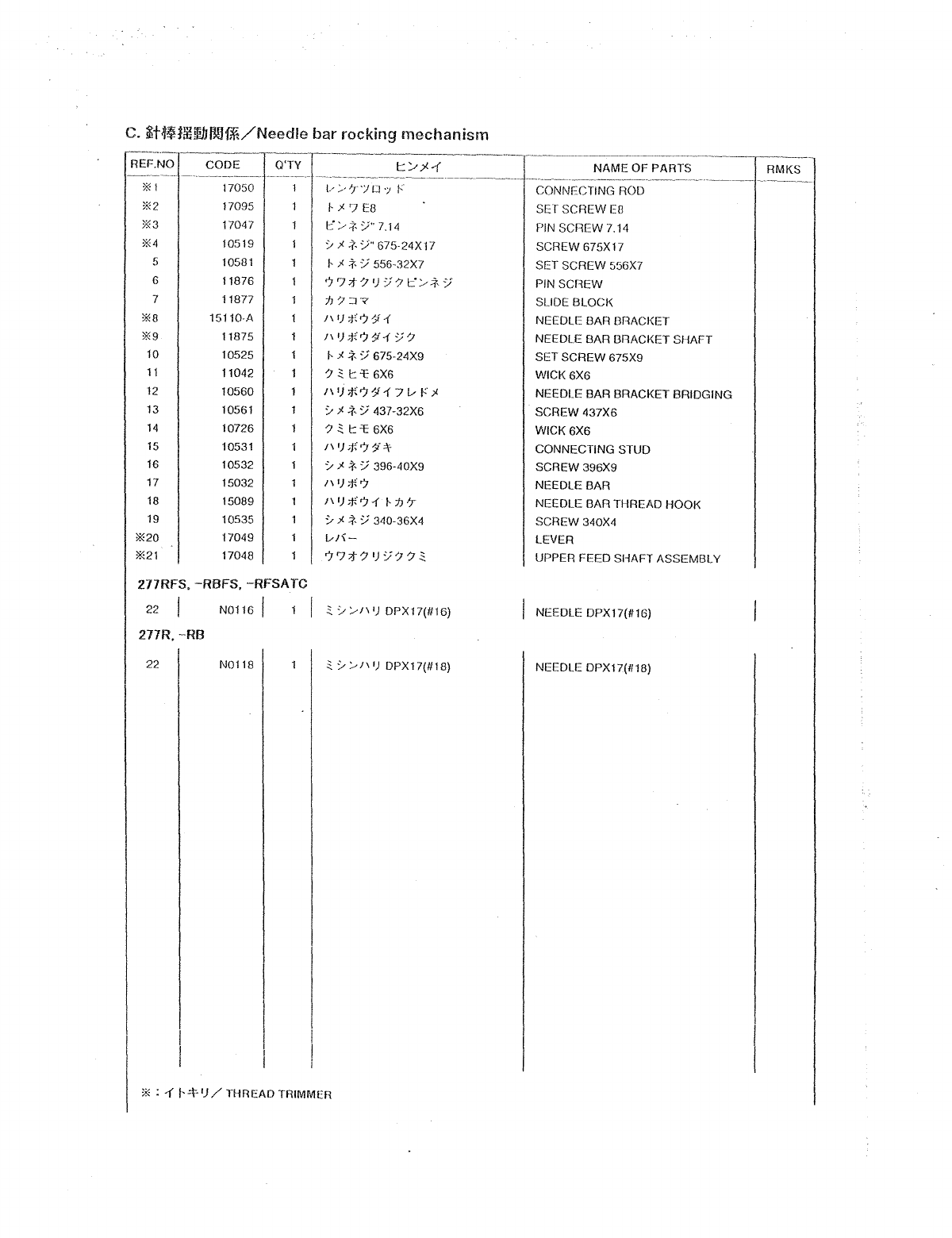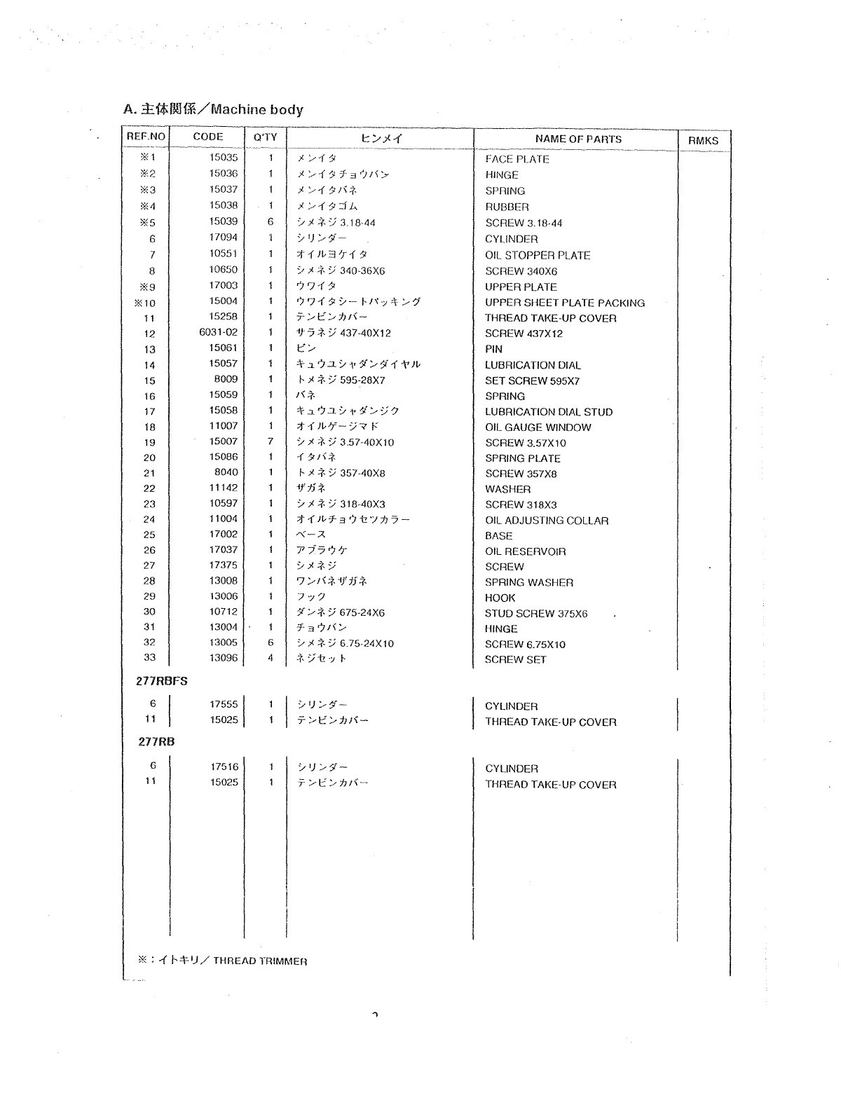 User Manual: ACE&EASTMAN Consew 277R Parts Book