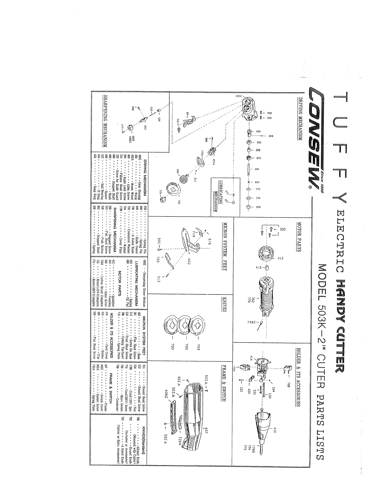 User Manual: ACE&EASTMAN Consew 503K Parts Book