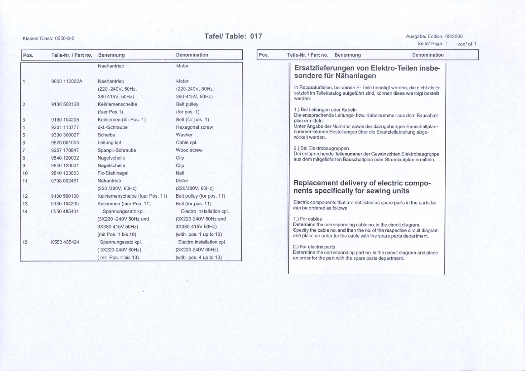 : ACE&EASTMAN Durkopp 550-8-2 DURKOPP 550-8-2 DURKOPP PARTS BOOKS