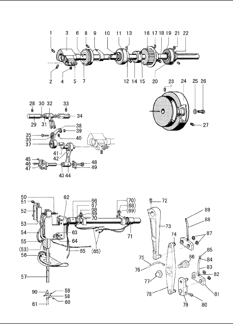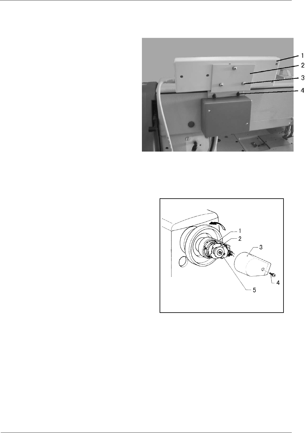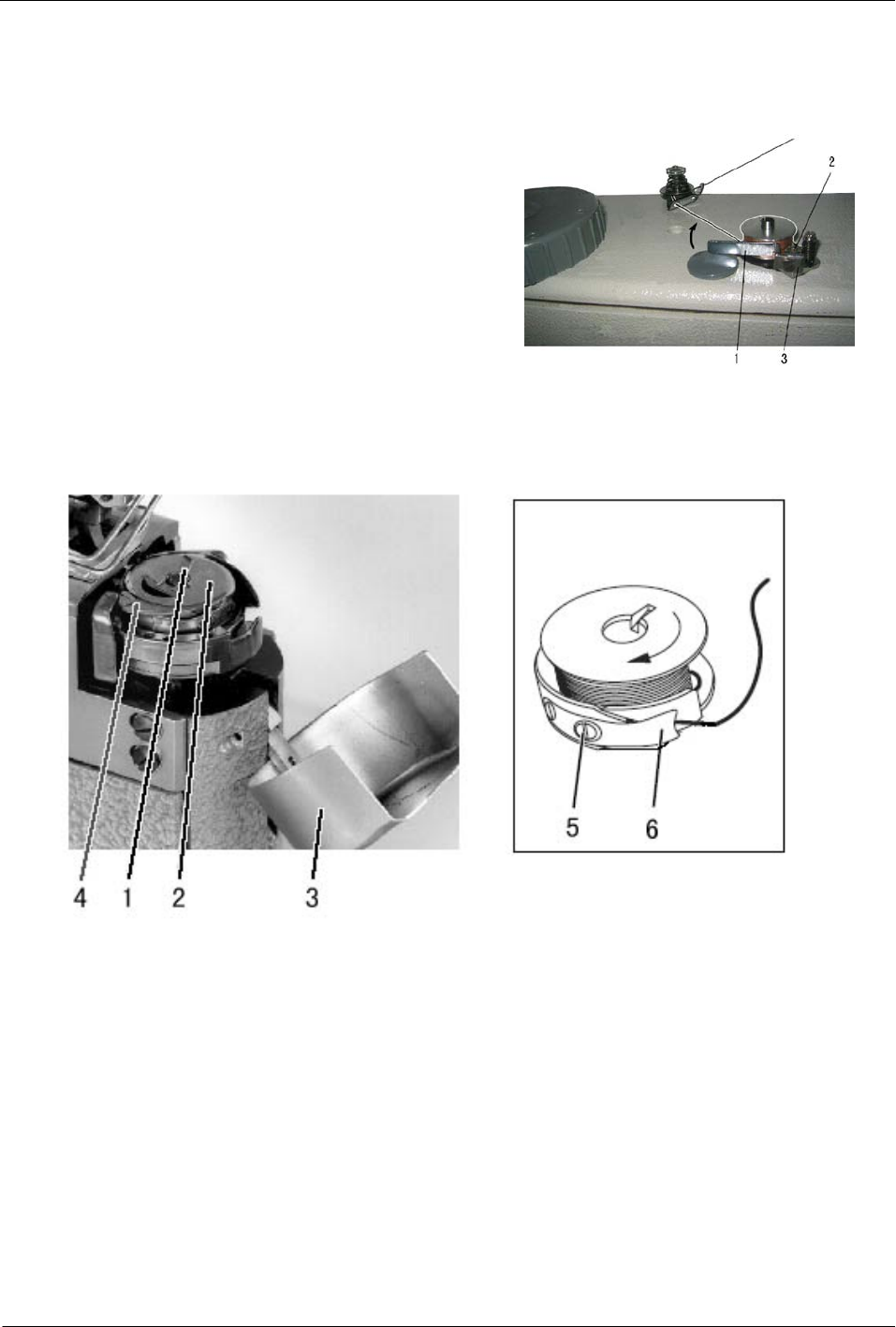 (4) Avoid placing fingers, hairs, bars etc. nears the pulley, bobbin winder pulley, when the machine is