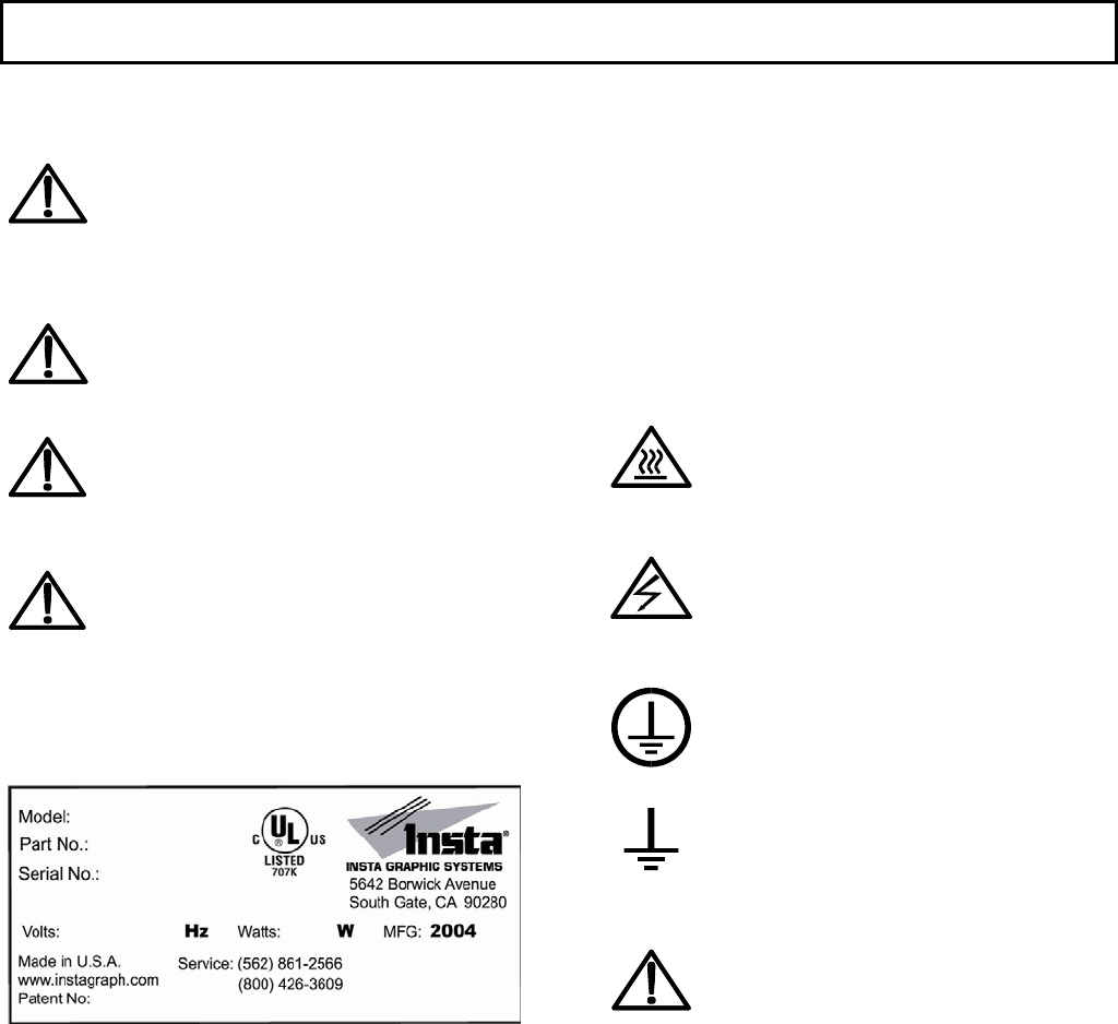 User Manual: ACE&EASTMAN Instagraphic 204 Parts & Instructions