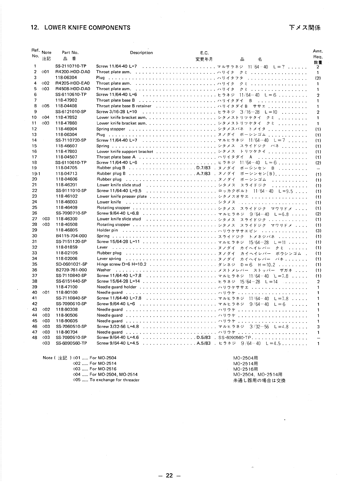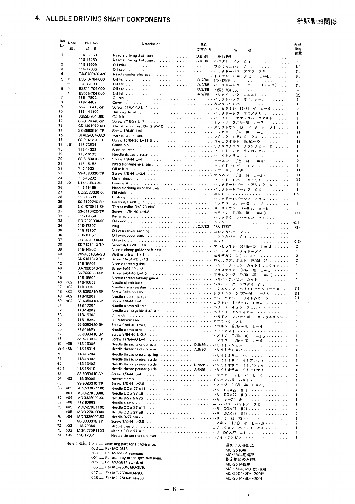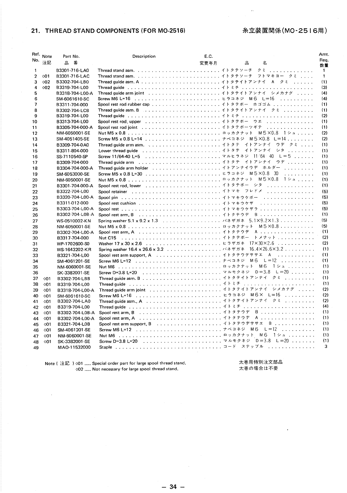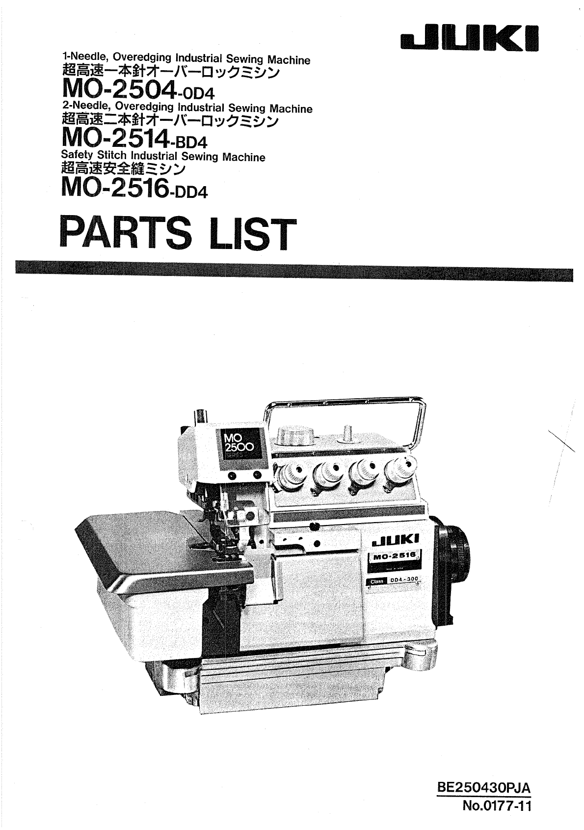 : ACE&EASTMAN Mo25040D4,Mo2514Bd4,& Mo2516Dd4 Parts List(No.0177-11) Be250430Pja MO25040D4,MO2514BD4,& MO2516DD4 Parts List(No.0177-11) BE250430PJA JUKI PARTS MANUALS