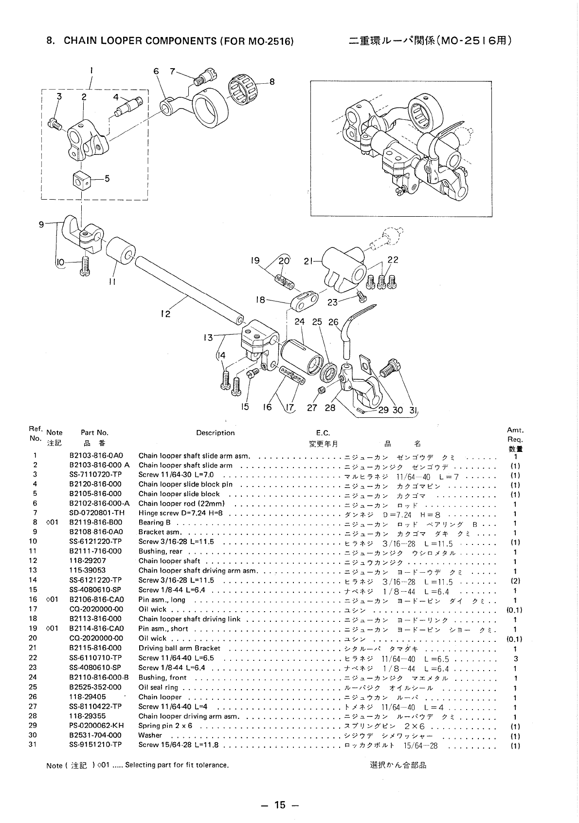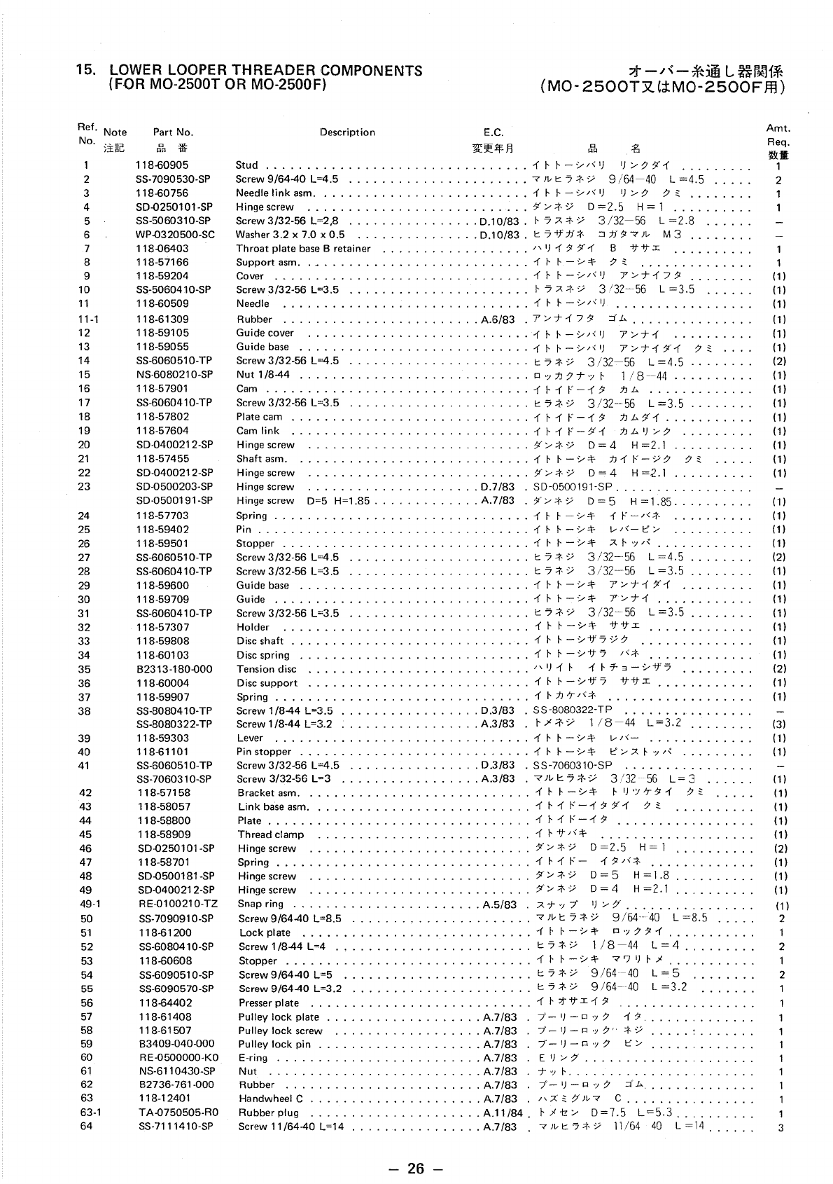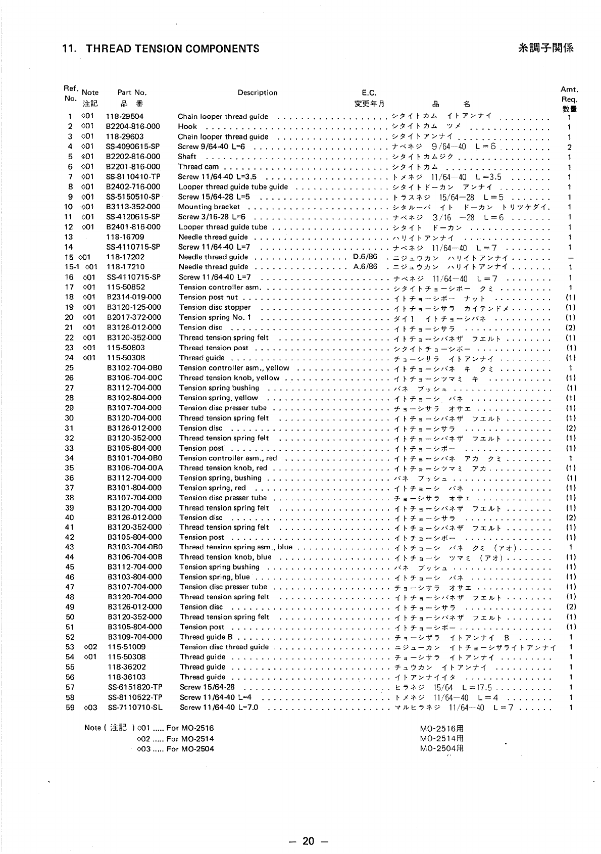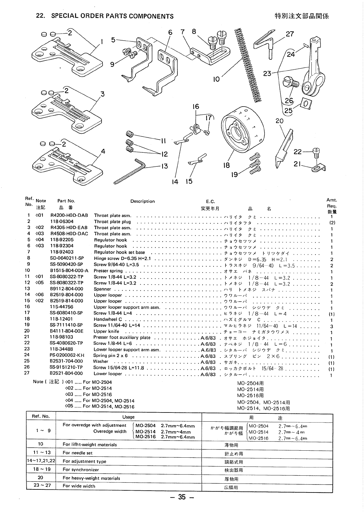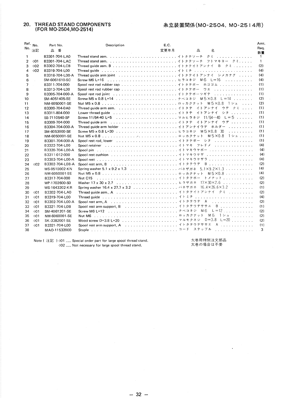 : ACE&EASTMAN Mo25040D4,Mo2514Bd4,& Mo2516Dd4 Parts List(No.0177-11) Be250430Pja MO25040D4,MO2514BD4,& MO2516DD4 Parts List(No.0177-11) BE250430PJA JUKI PARTS MANUALS