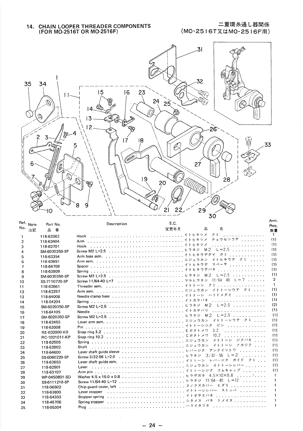 MO25040D4,MO2514BD4,& MO2516DD4 Parts List(No.0177 11) BE250430PJA