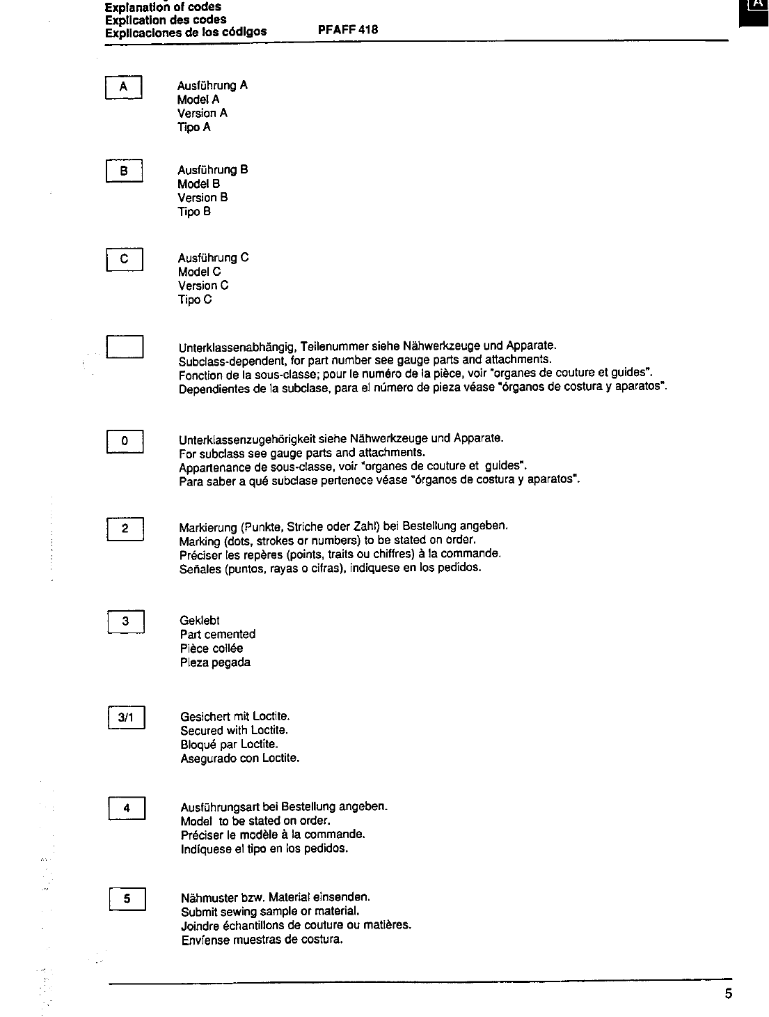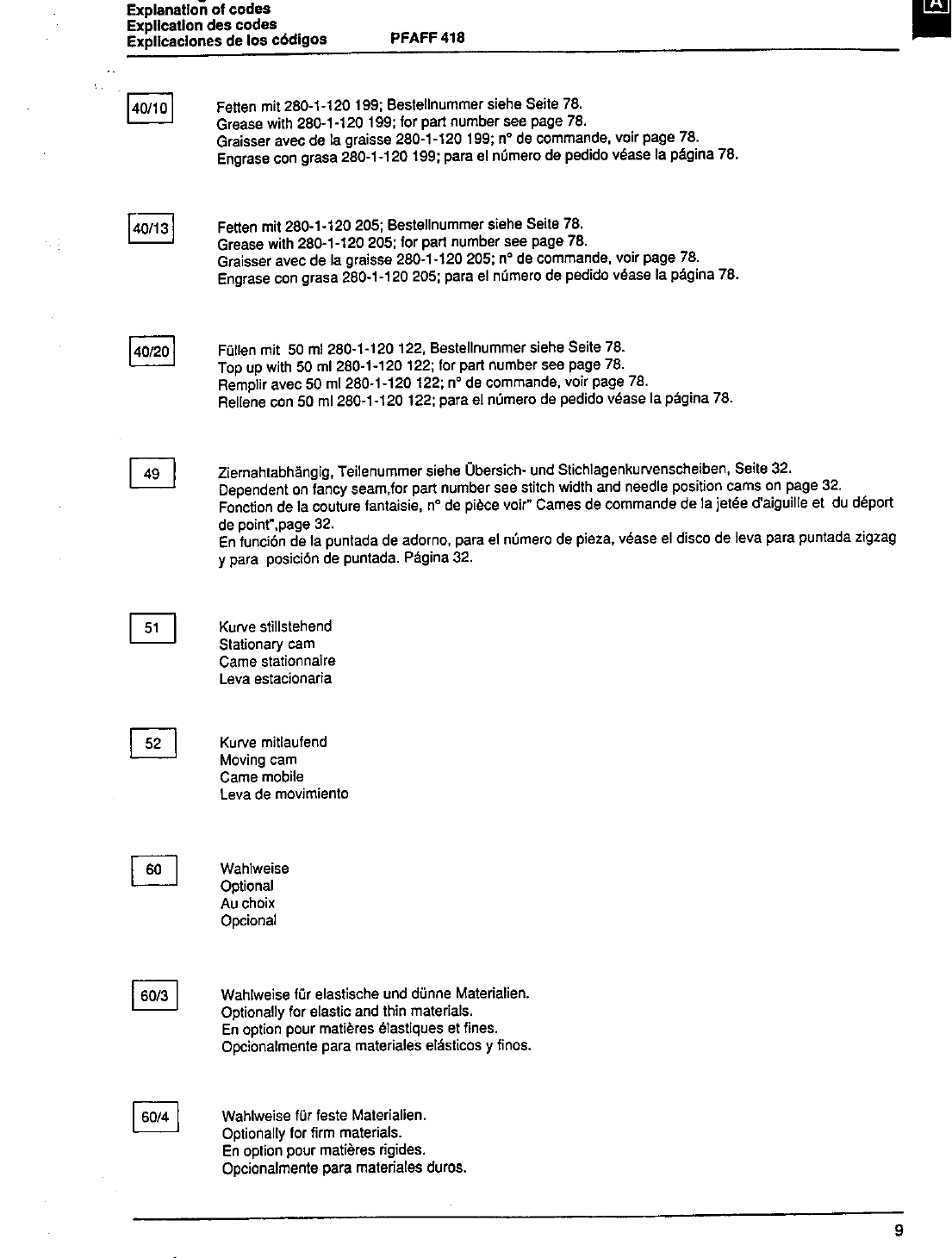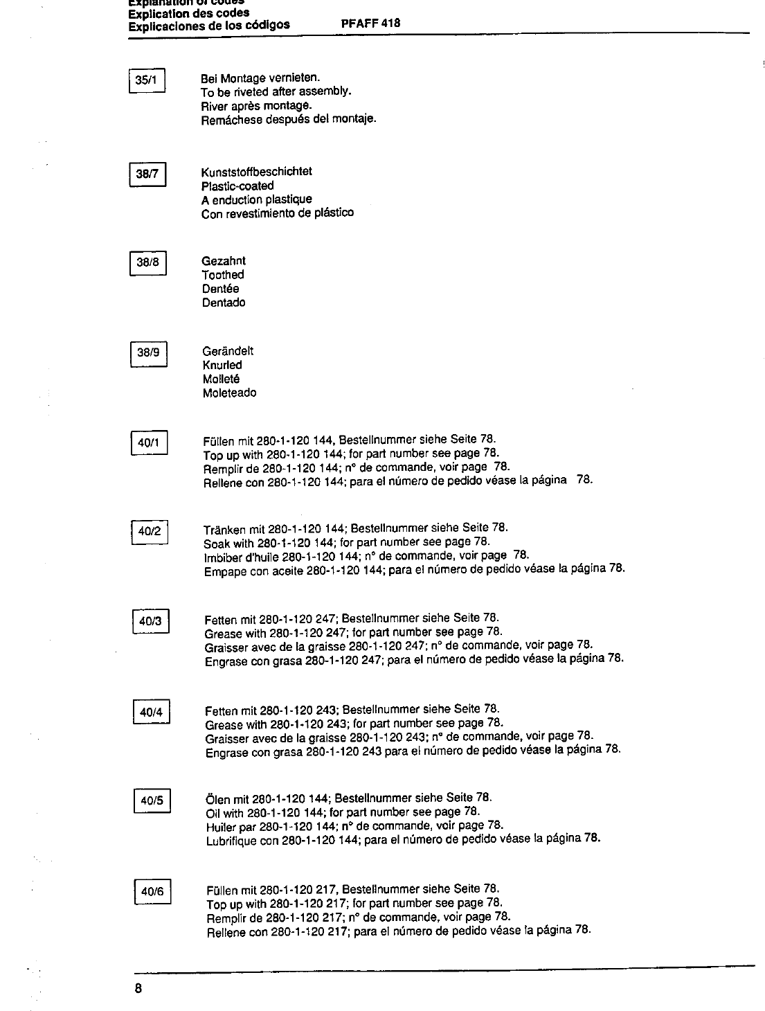: ACE&EASTMAN Pfaff 418 Pfaff 418 Pfaff Parts Charts