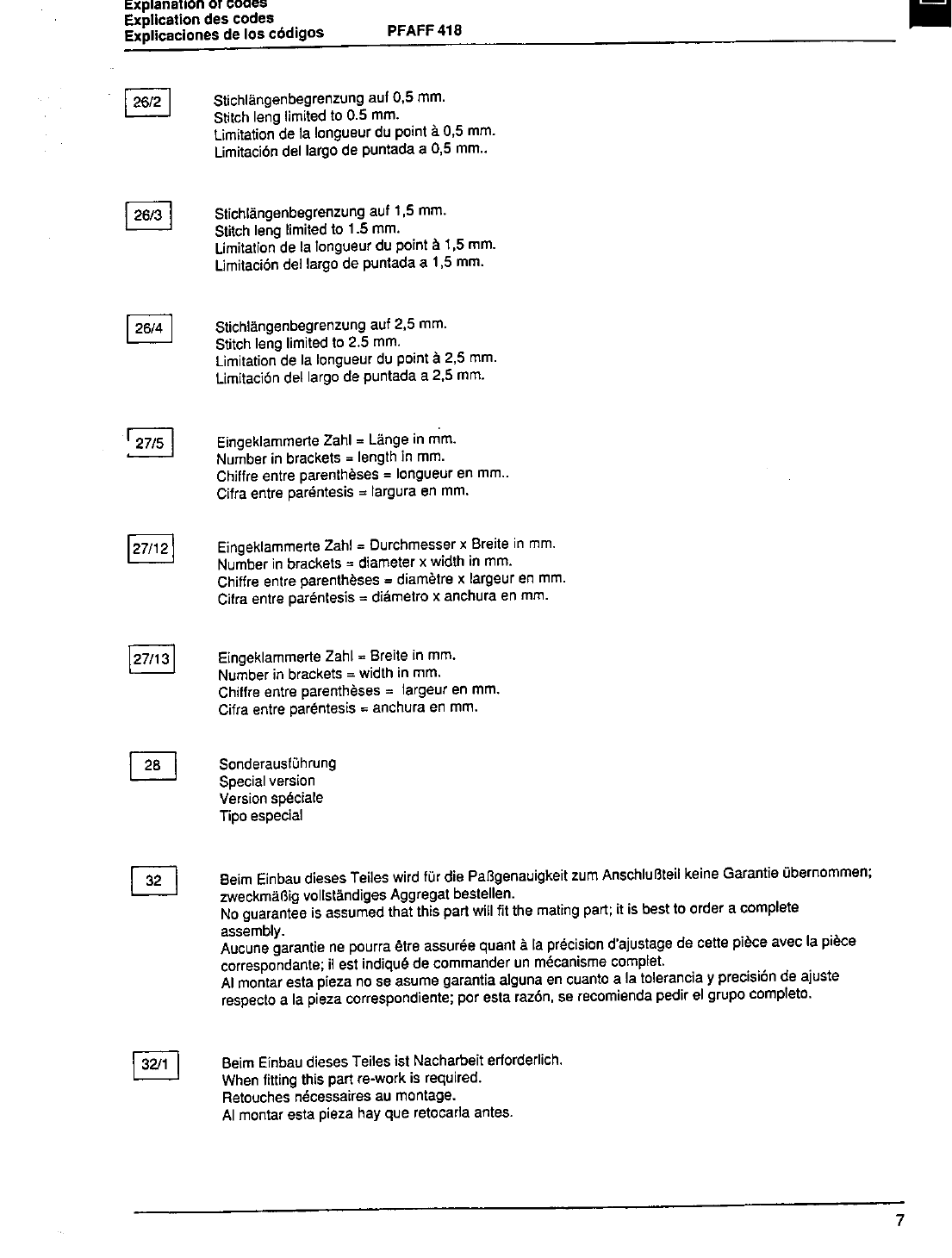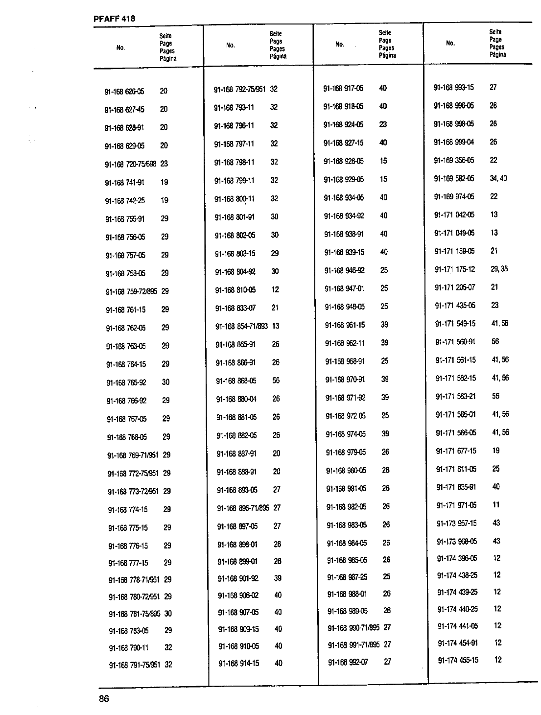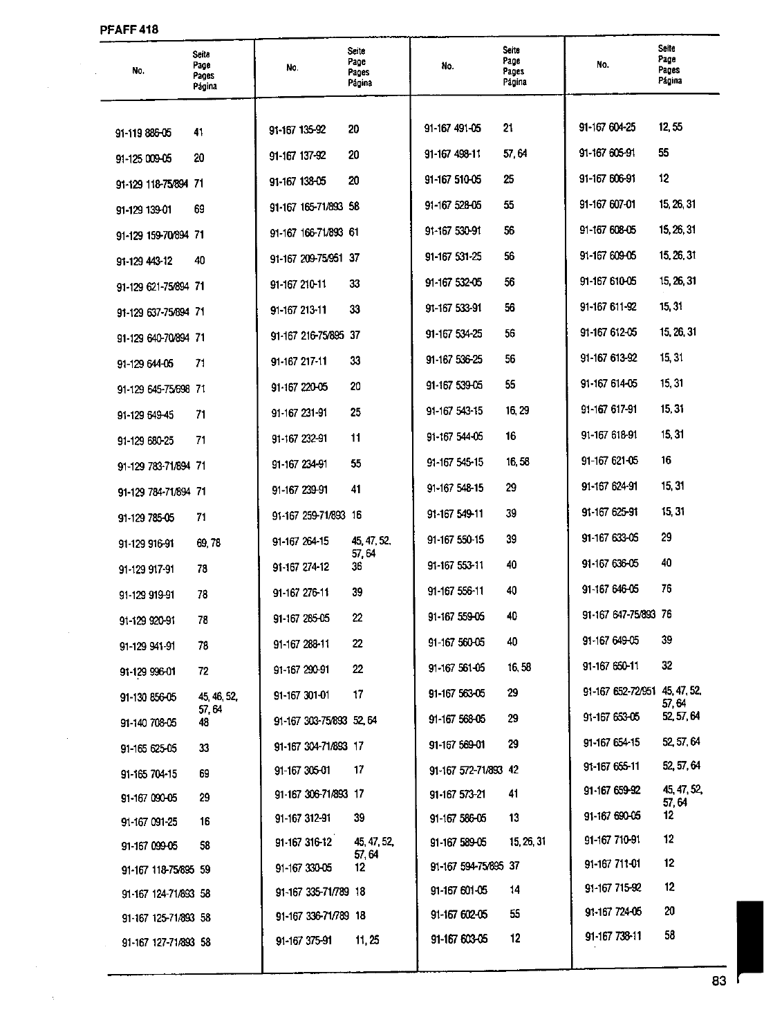 : ACE&EASTMAN Pfaff 418 Pfaff 418 Pfaff Parts Charts