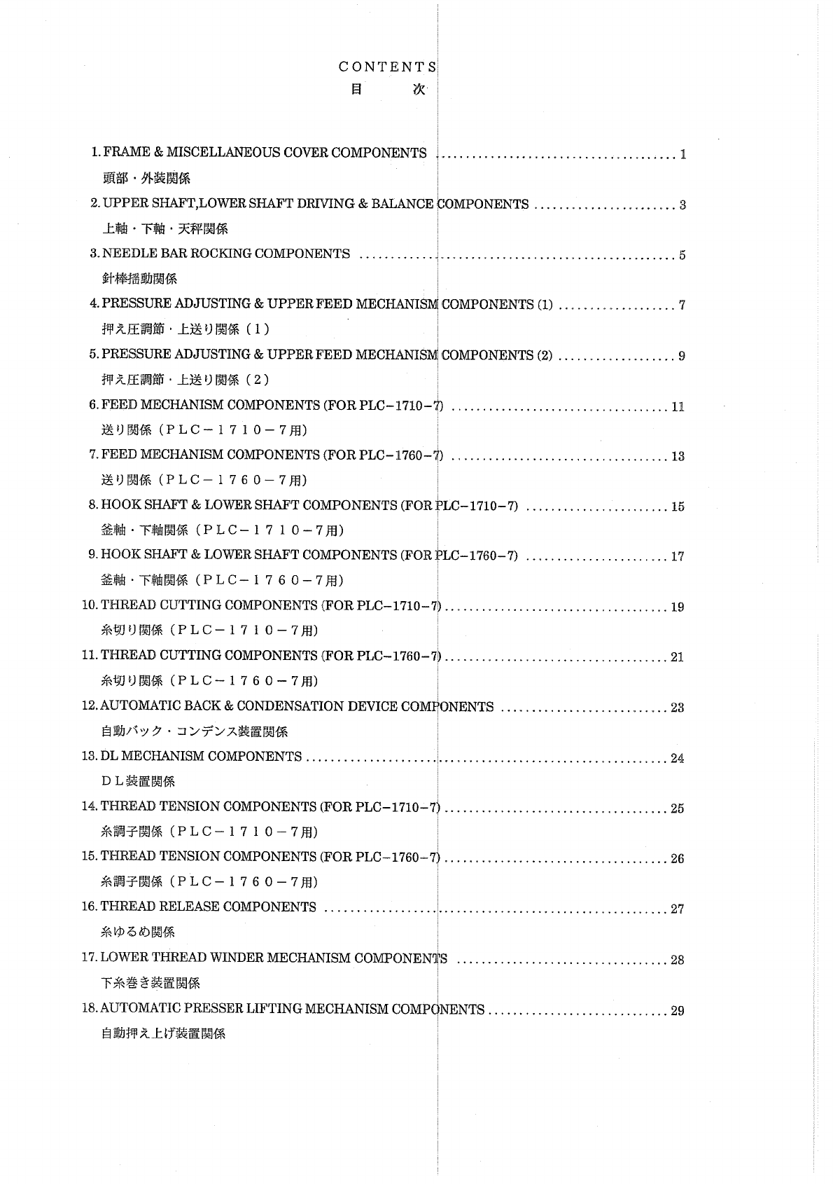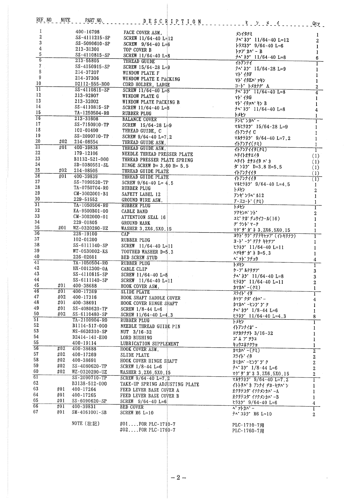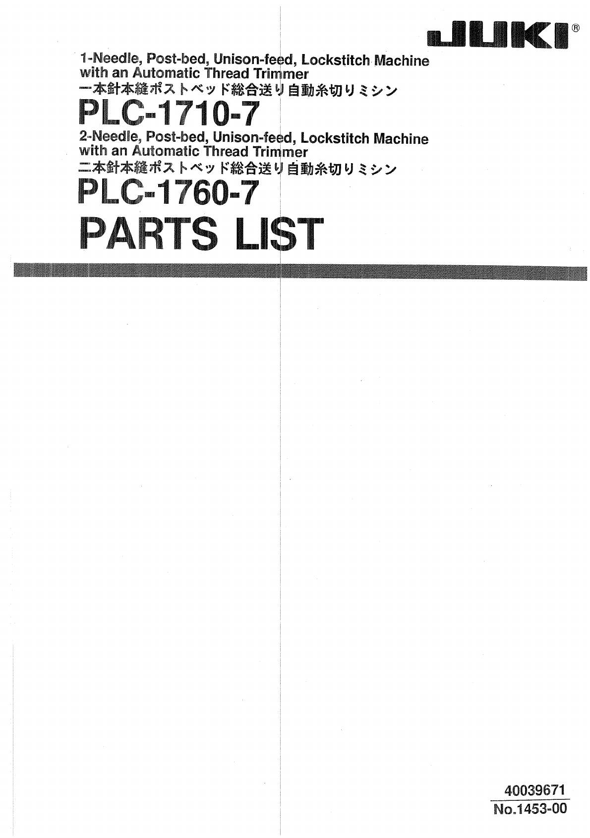 : ACE&EASTMAN Plc-1710-7,Plc-1760-7 Parts List PLC-1710-7,PLC-1760-7 Parts List JUKI PARTS MANUALS