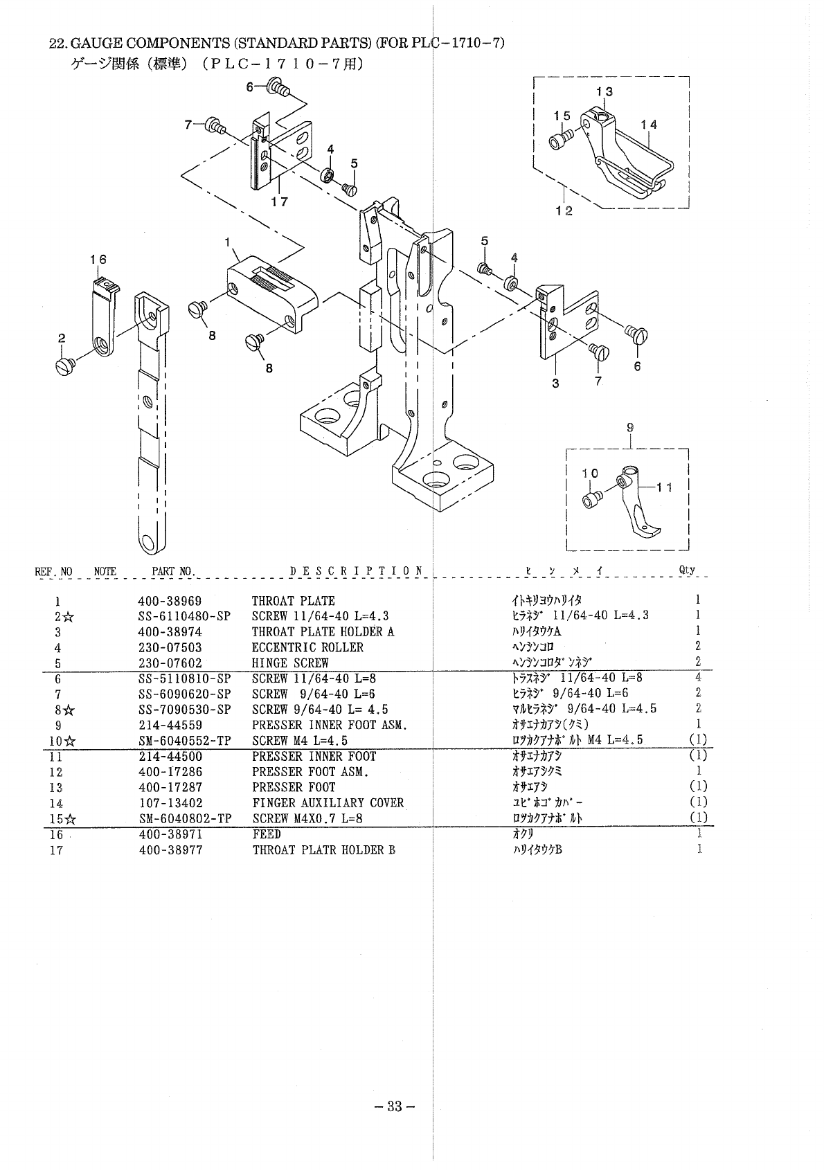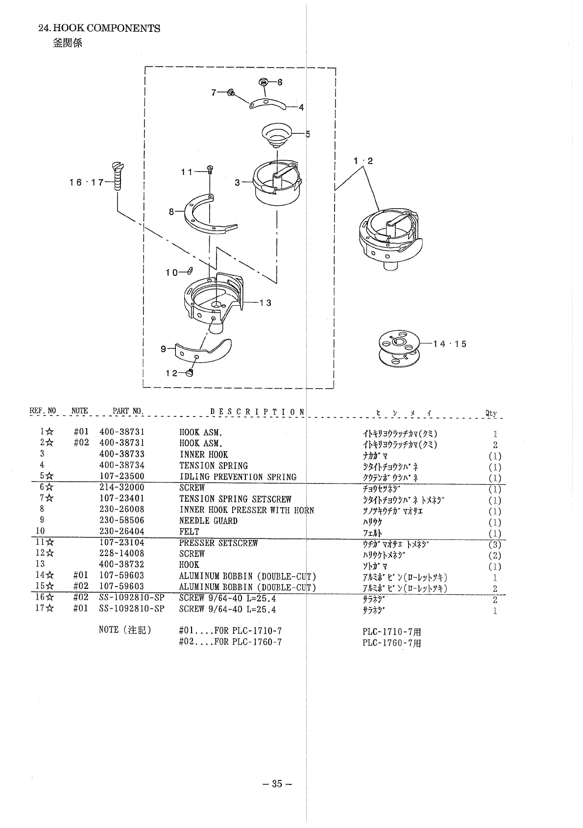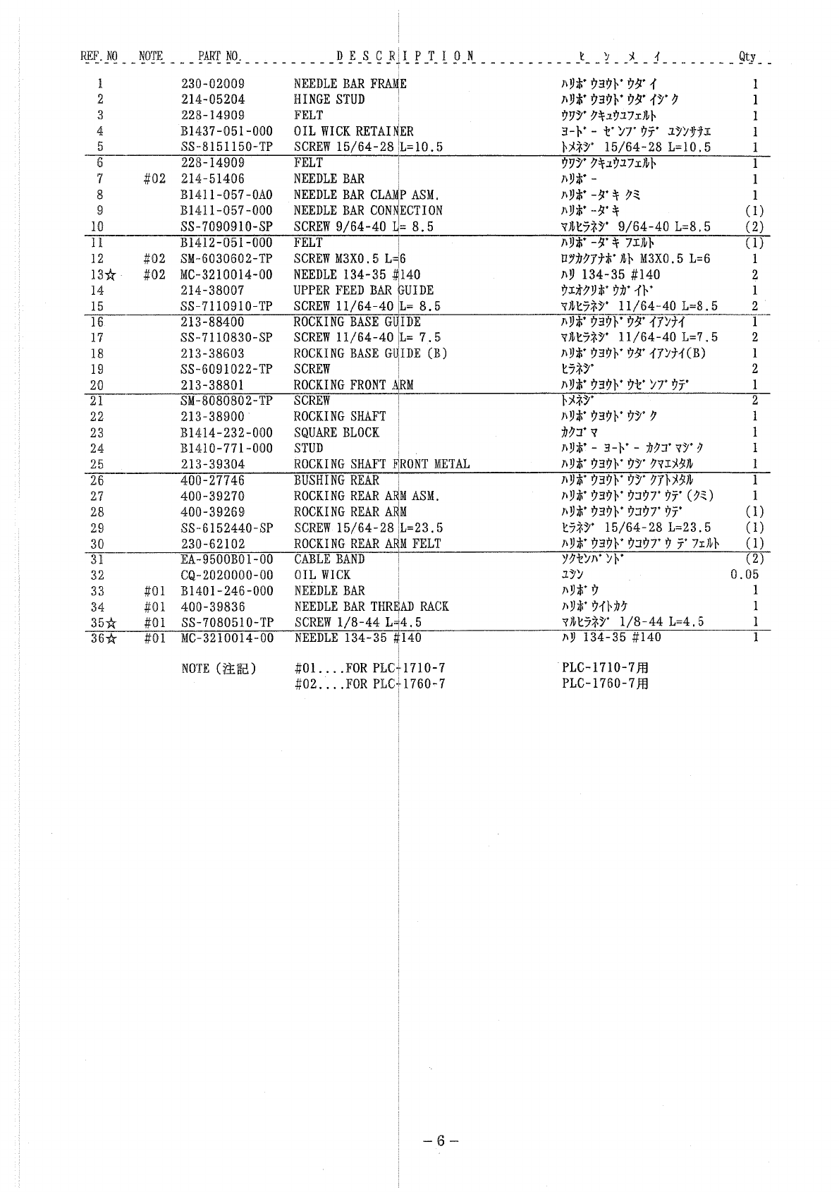 : ACE&EASTMAN Plc-1710-7,Plc-1760-7 Parts List PLC-1710-7,PLC-1760-7 Parts List JUKI PARTS MANUALS