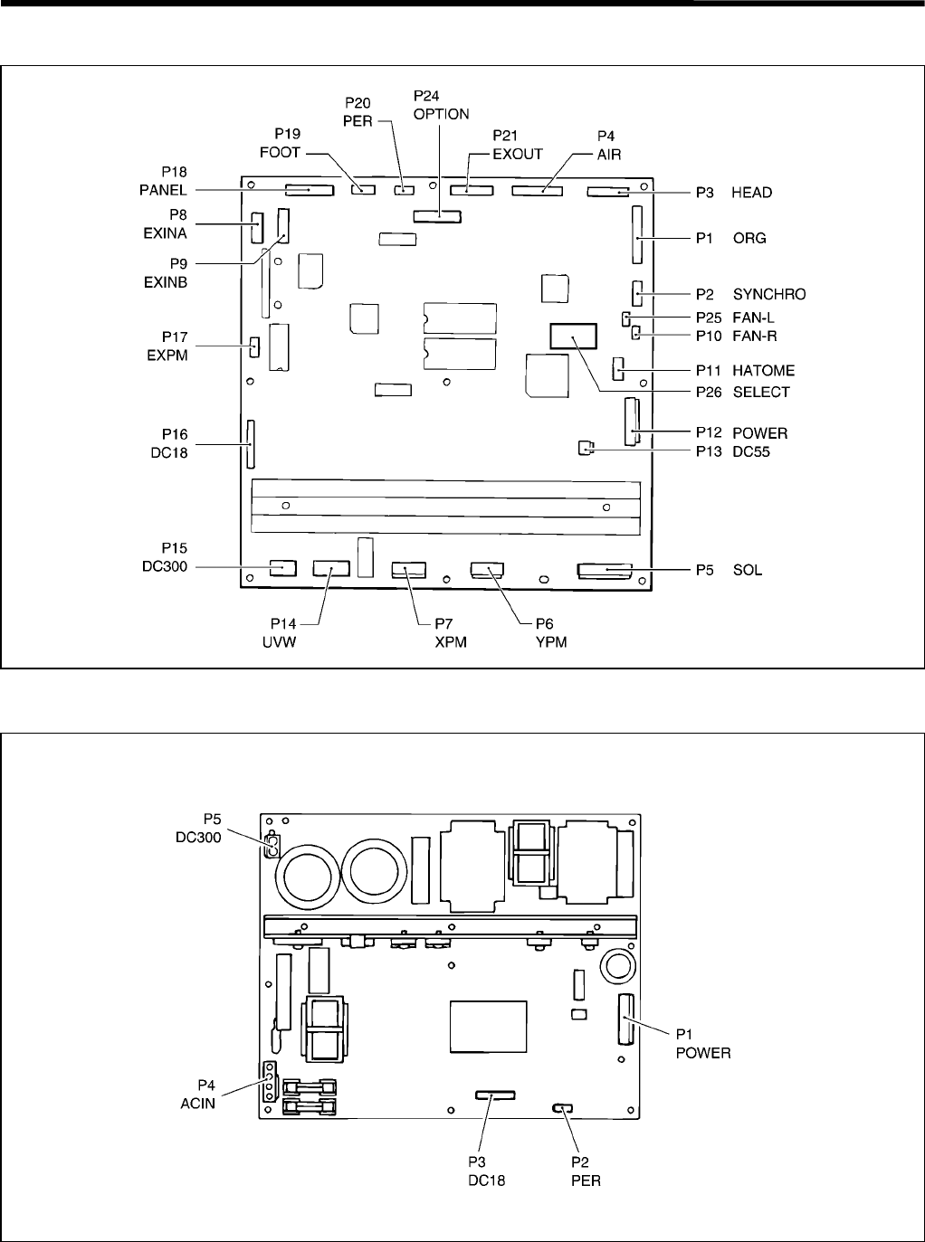 4. Check if connector P2 (PER) on the power supply circuit board is securely inserted and if any