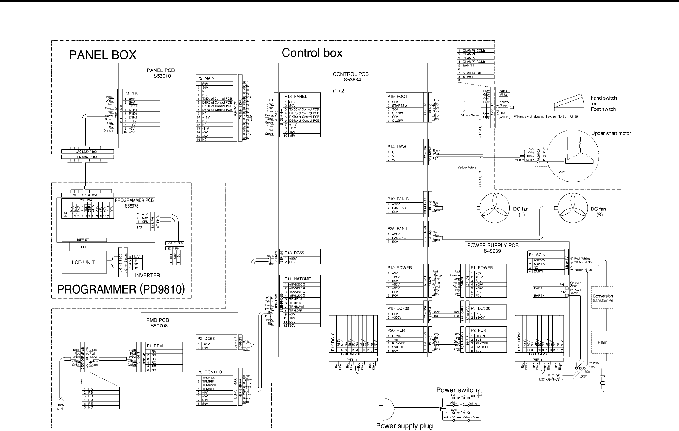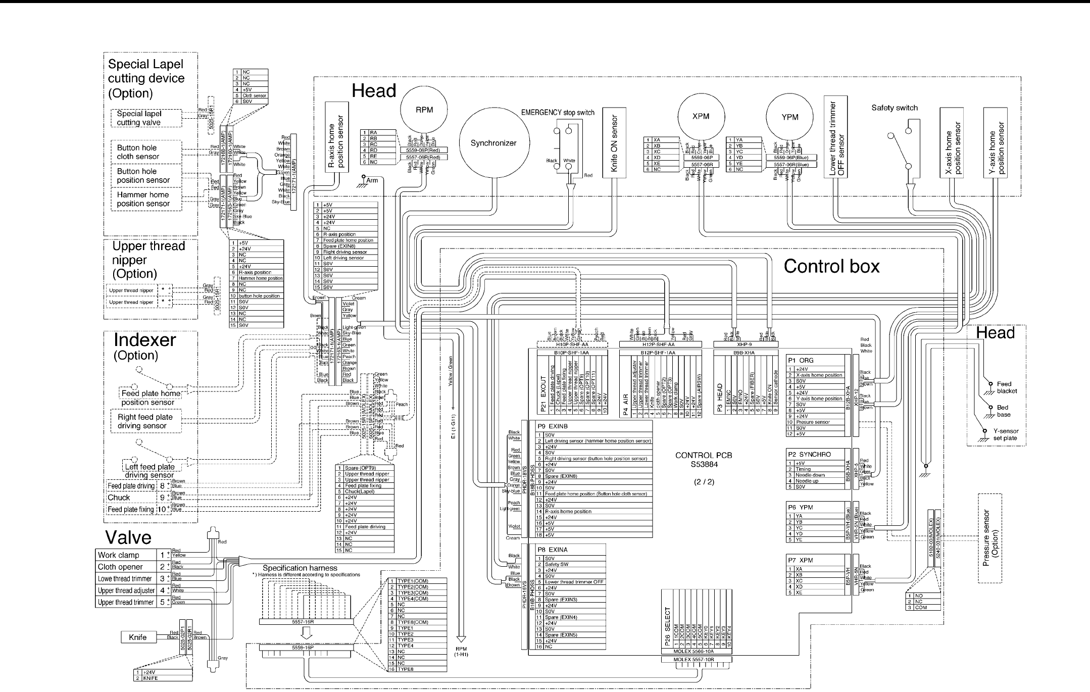 2. Of connectors relayed to head harness, check if the harness for the buttonhole sensor is correctly