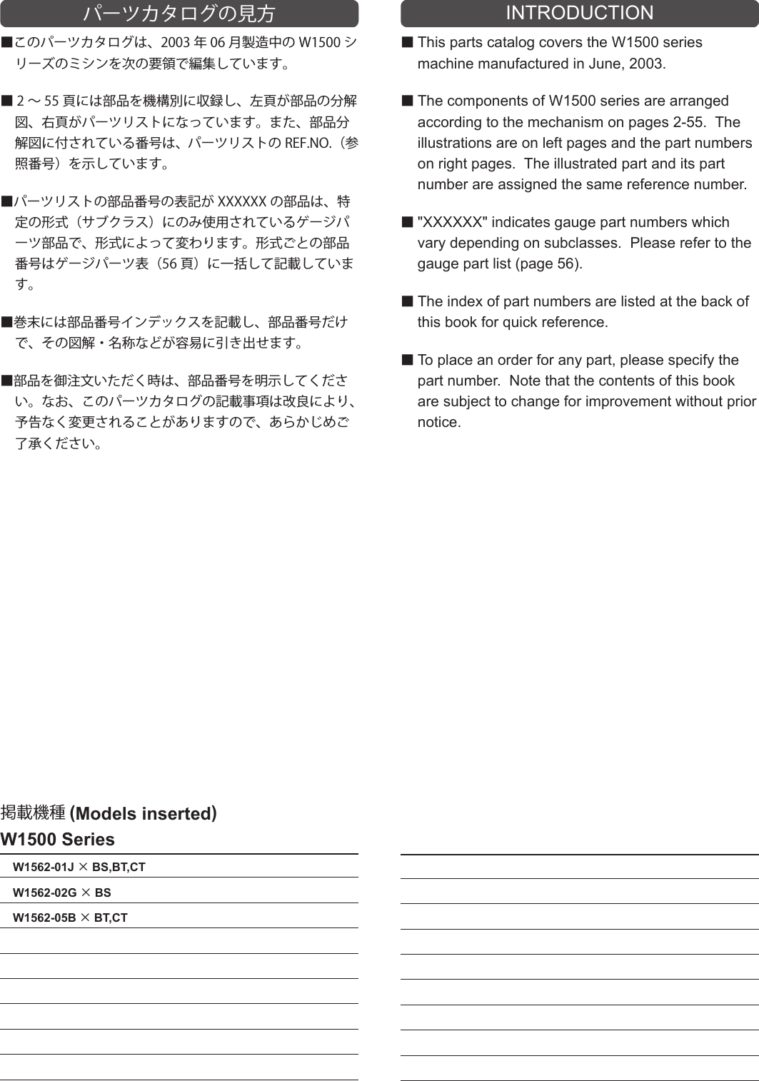 : ACE&EASTMAN W1500 Parts Book W1500 PARTS BOOK PEG PARTS PEGASUS