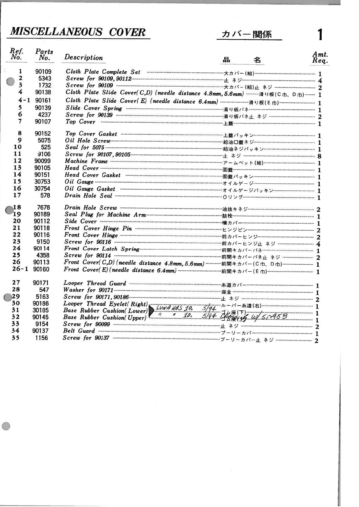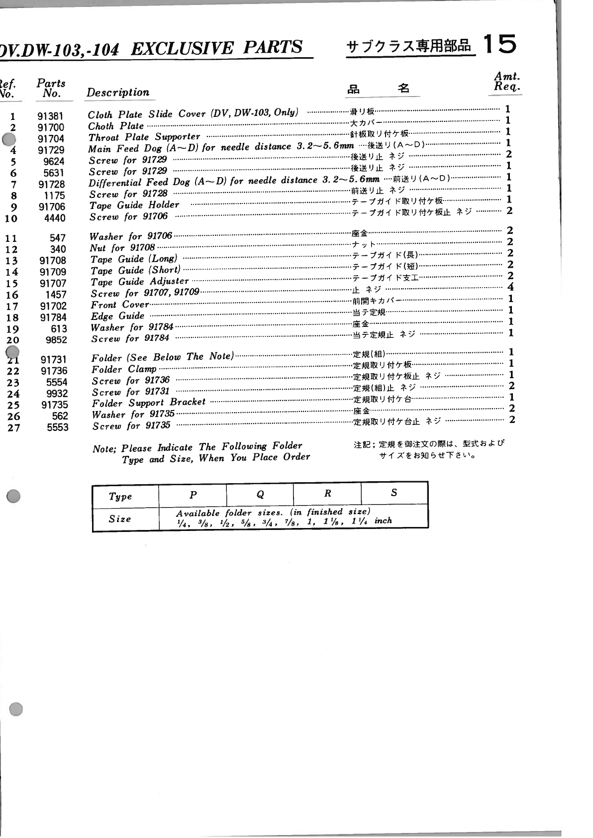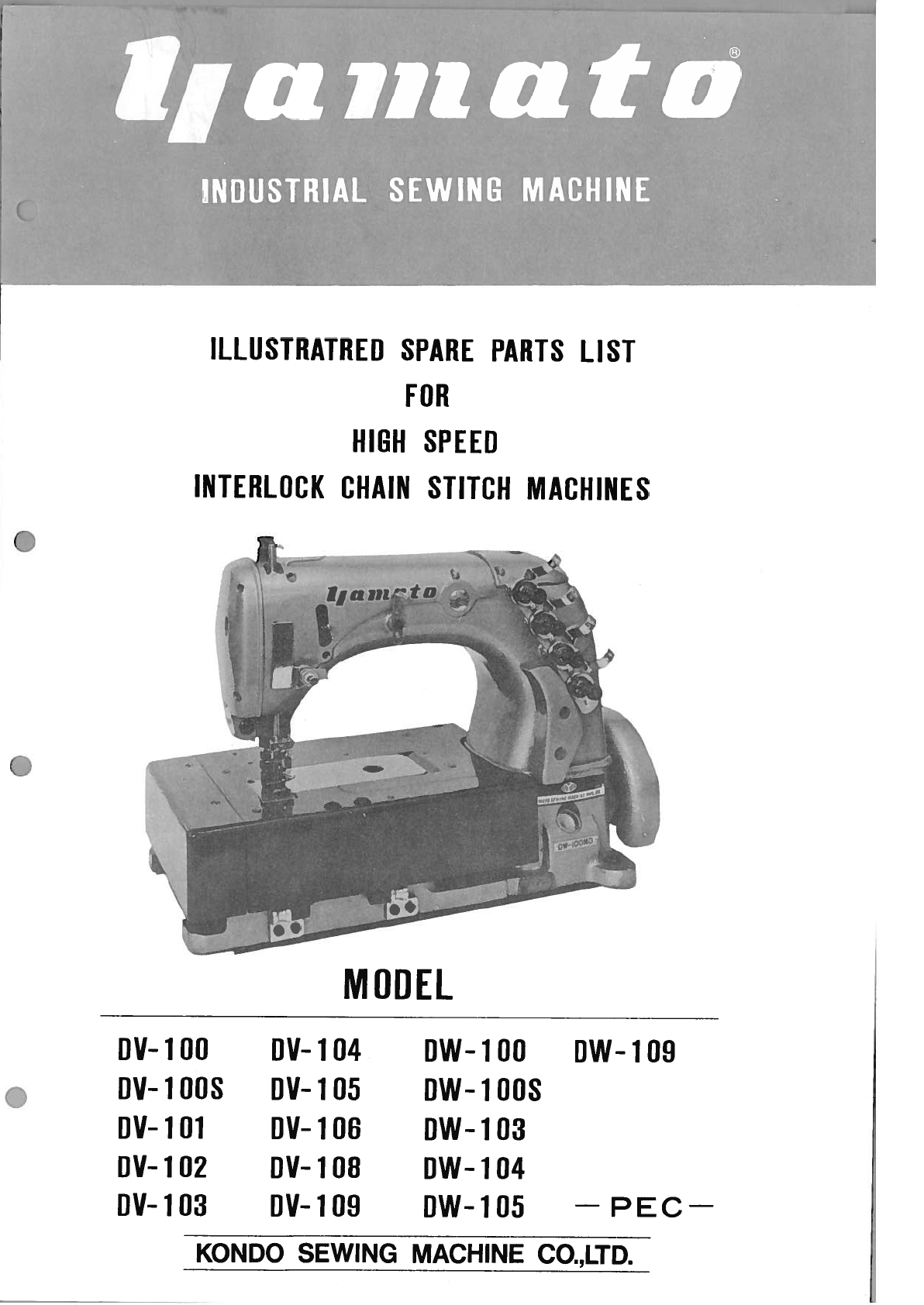 Yamato Dv-100 To 109 Parts Book Yamato DV-100 to 109 PARTS BOOK