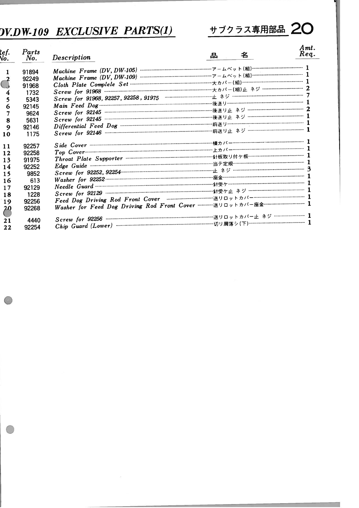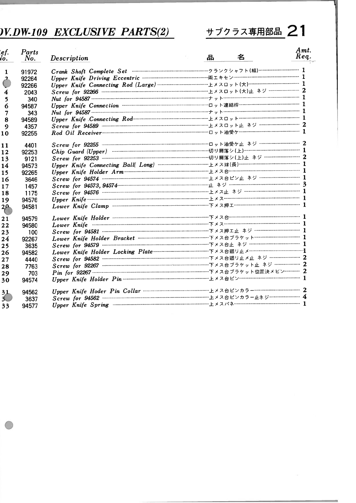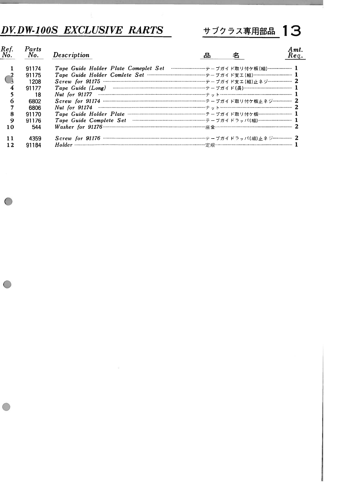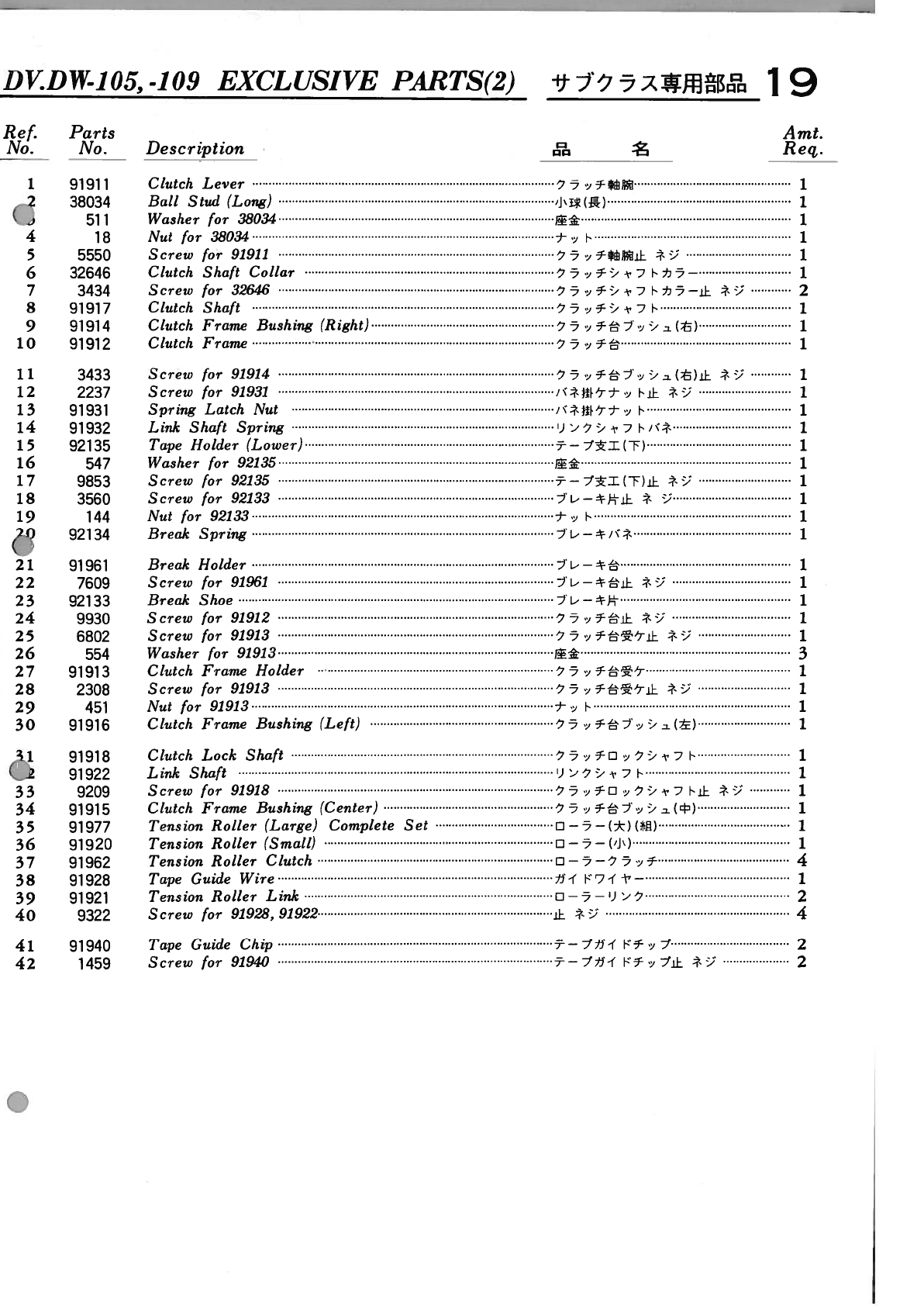 YAMATO DV 100 To 109 PARTS BOOK