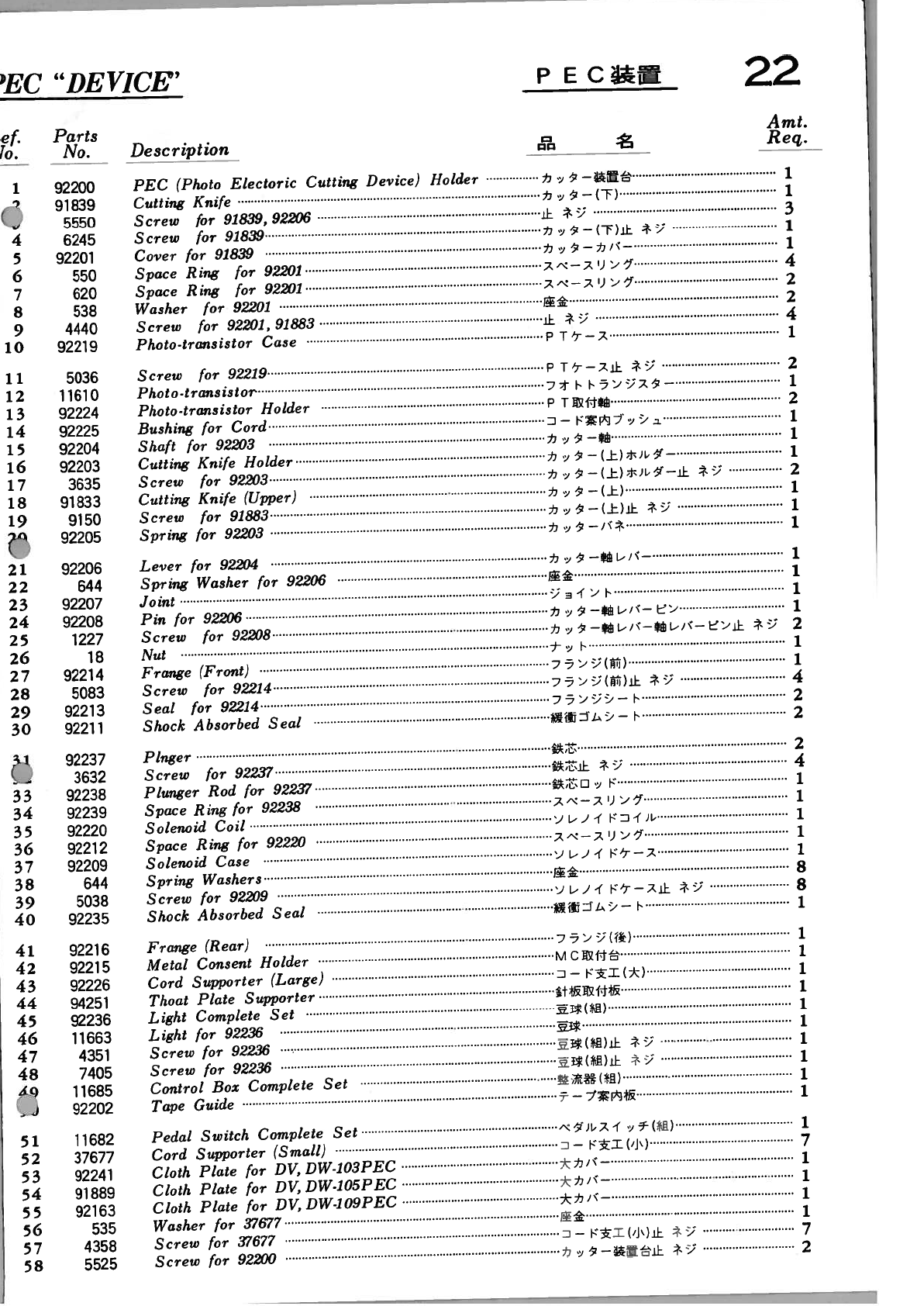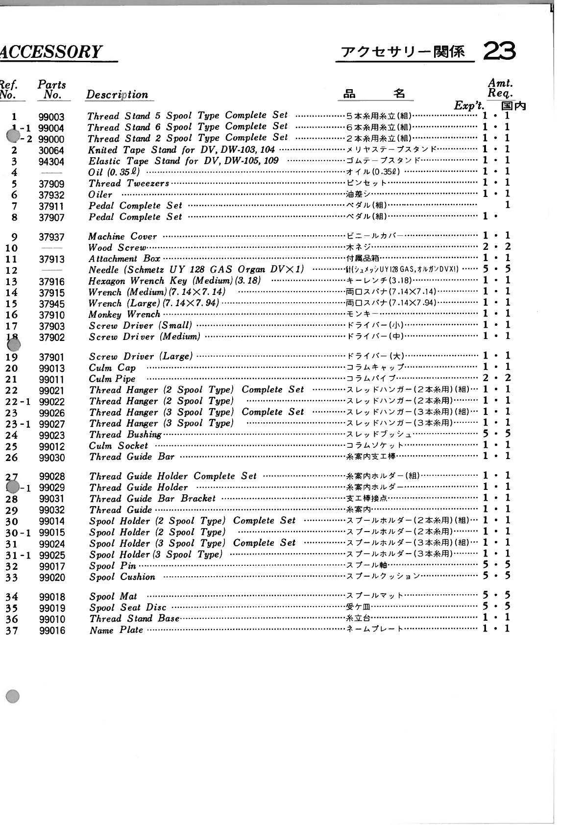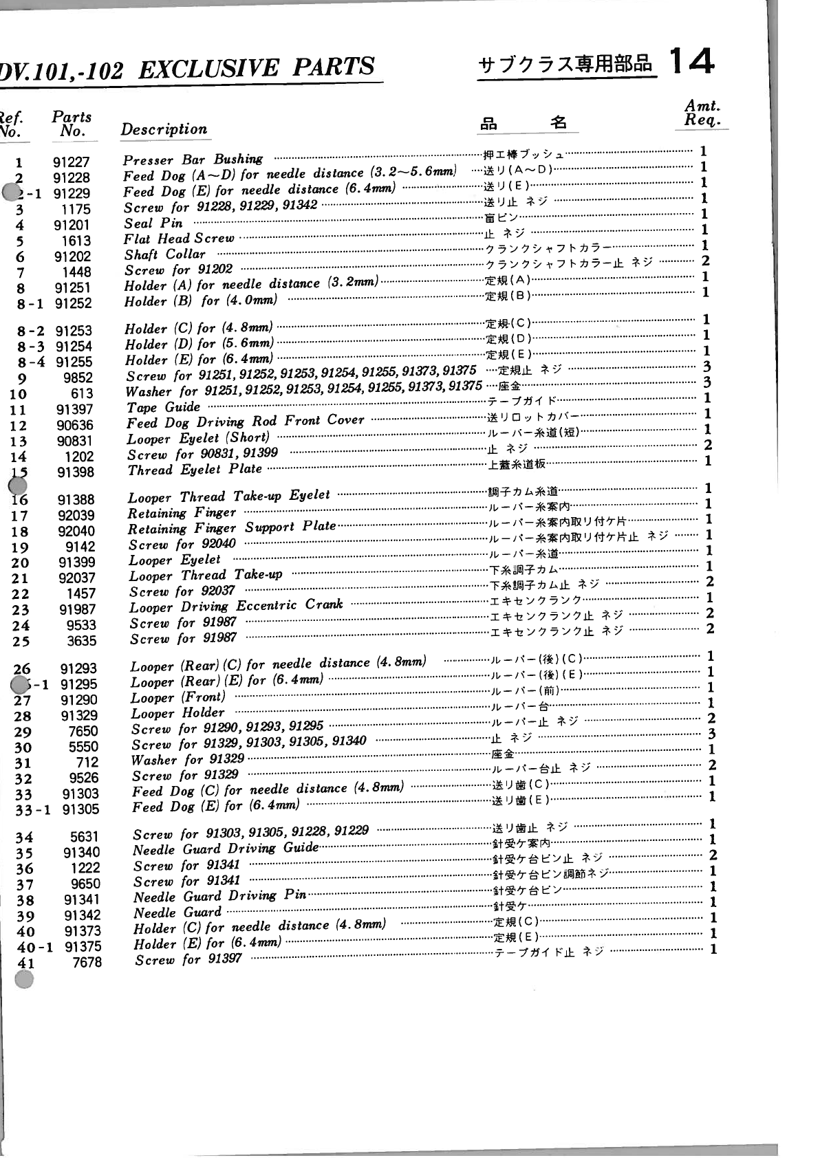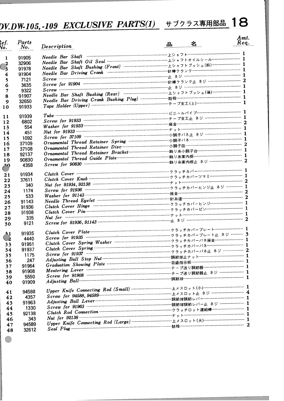 YAMATO DV 100 To 109 PARTS BOOK