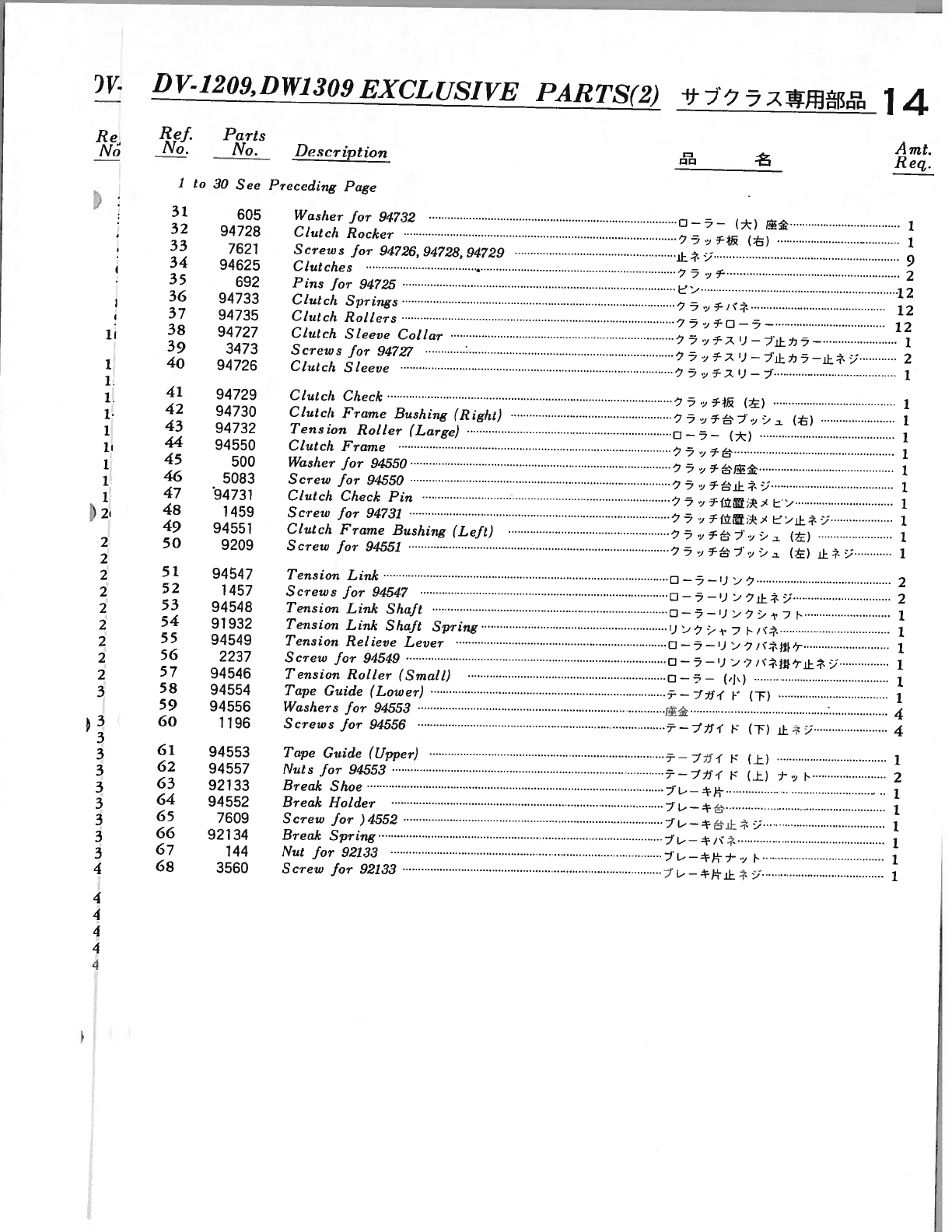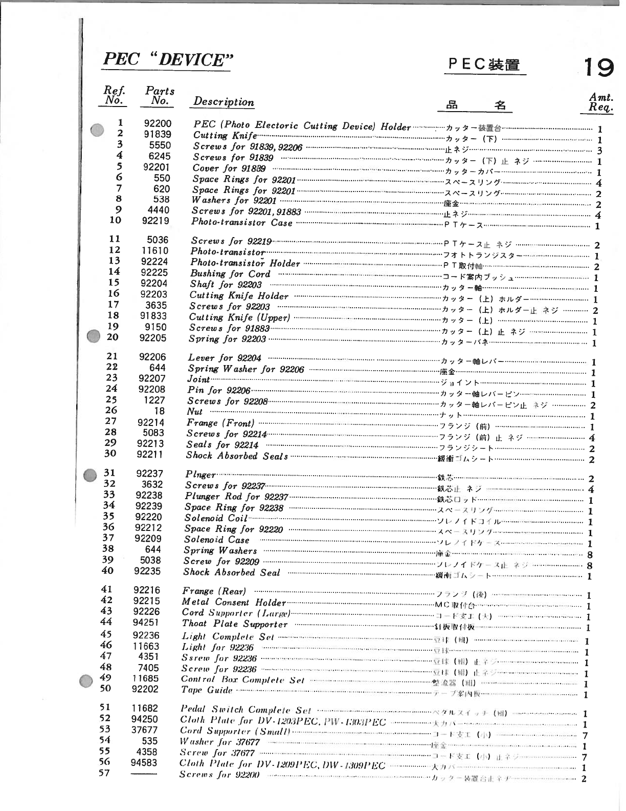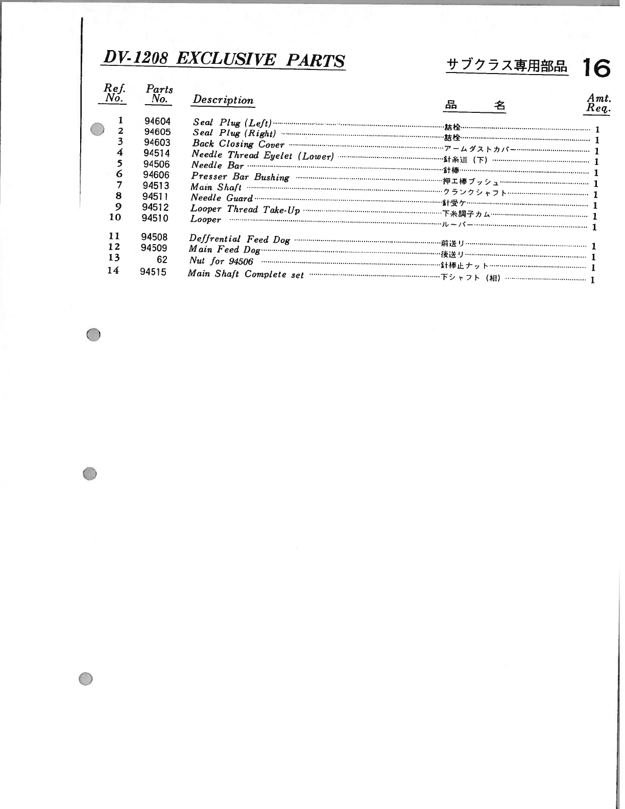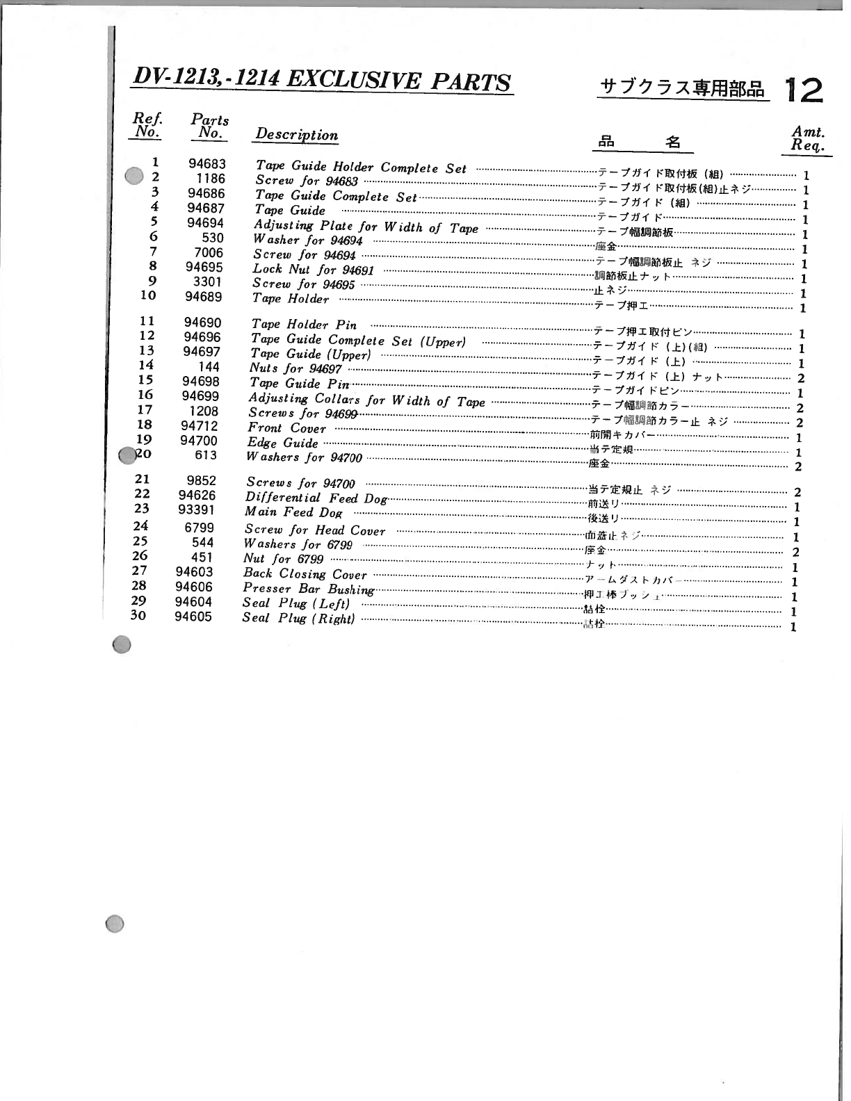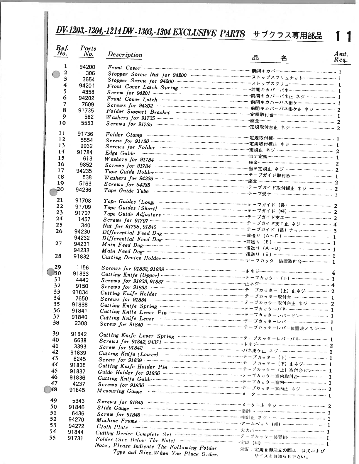 YAMATO DV 1200, 1203, 1204, 1205, 1208, 1209, 1211, 1212, 1213 And 1214 PARTS BOOK