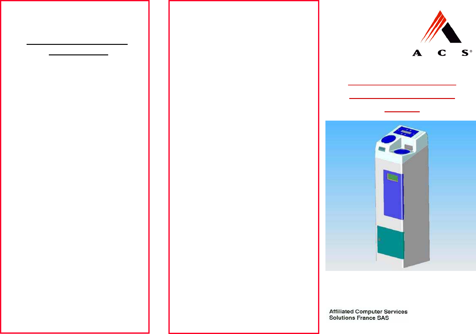 ACS Solutions FranceS FBE420 EQUIPMENT THAT IS INSTALLED ON BUSES AND IS FOR USE BY PASSENGER FOR CASH TRANSACTIONS TO PURCHASE TICKETS, FOR ISSUING MAGNETIC TICKETS AND FOR THE VALIDATION OF MAGNETIC TICKETS OR CONTACTLESS SMART CARD User Manual FBE420 UserMan