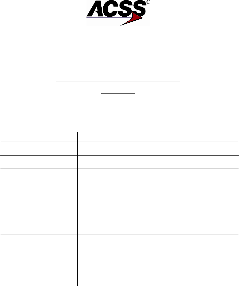 This document and the information disclosed herein are proprietary data of ACSS. Neither this document