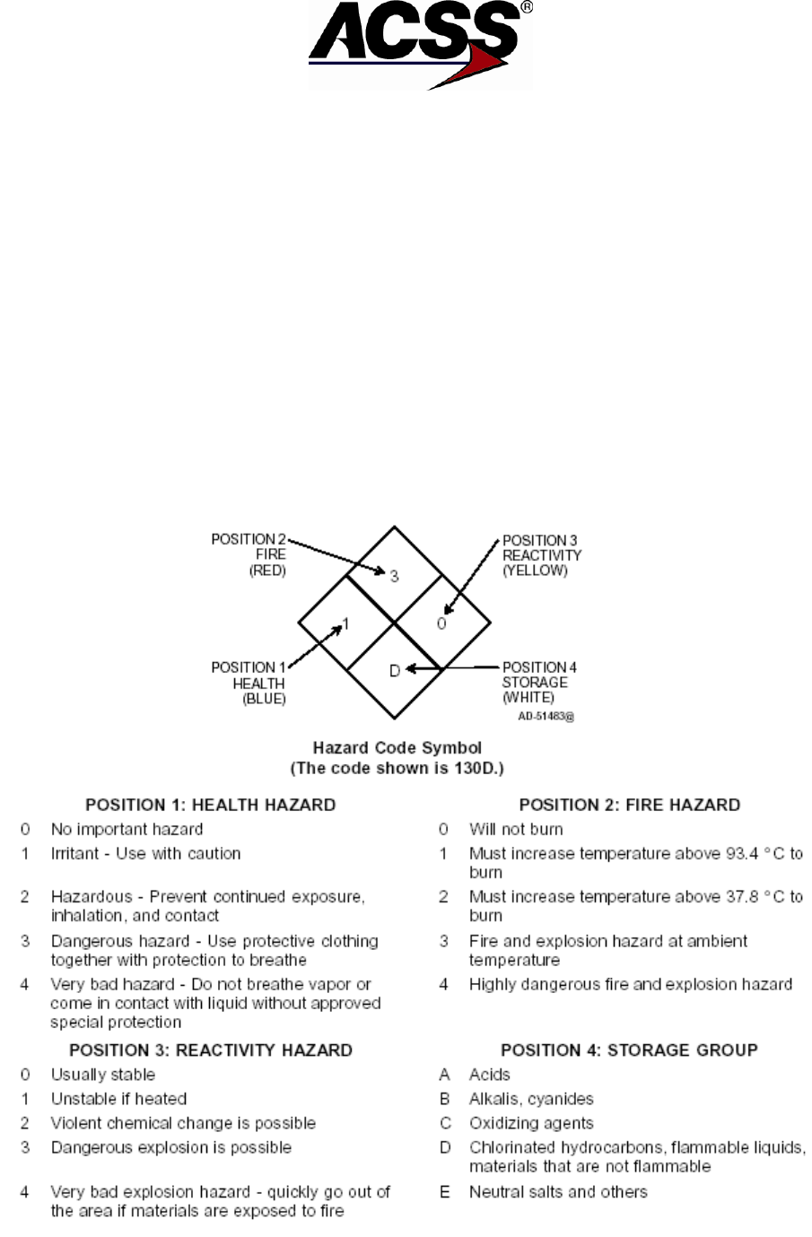 ACSS uses the National Fire Protection Association system to identify the different levels of hazards that