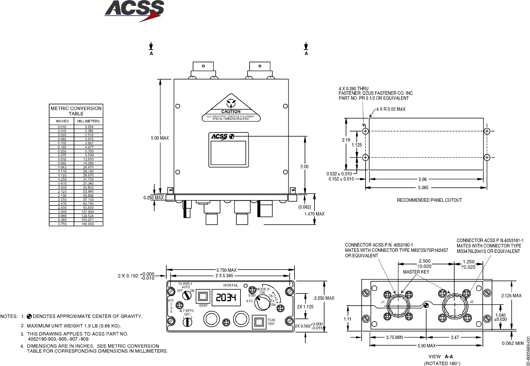 Part No. 4052190−902, −904, −906, −908