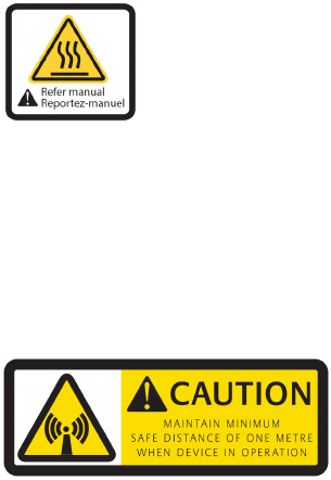 Avoid touching the metal plate of the Transceiver (bottom/rear) during continuous operation that
