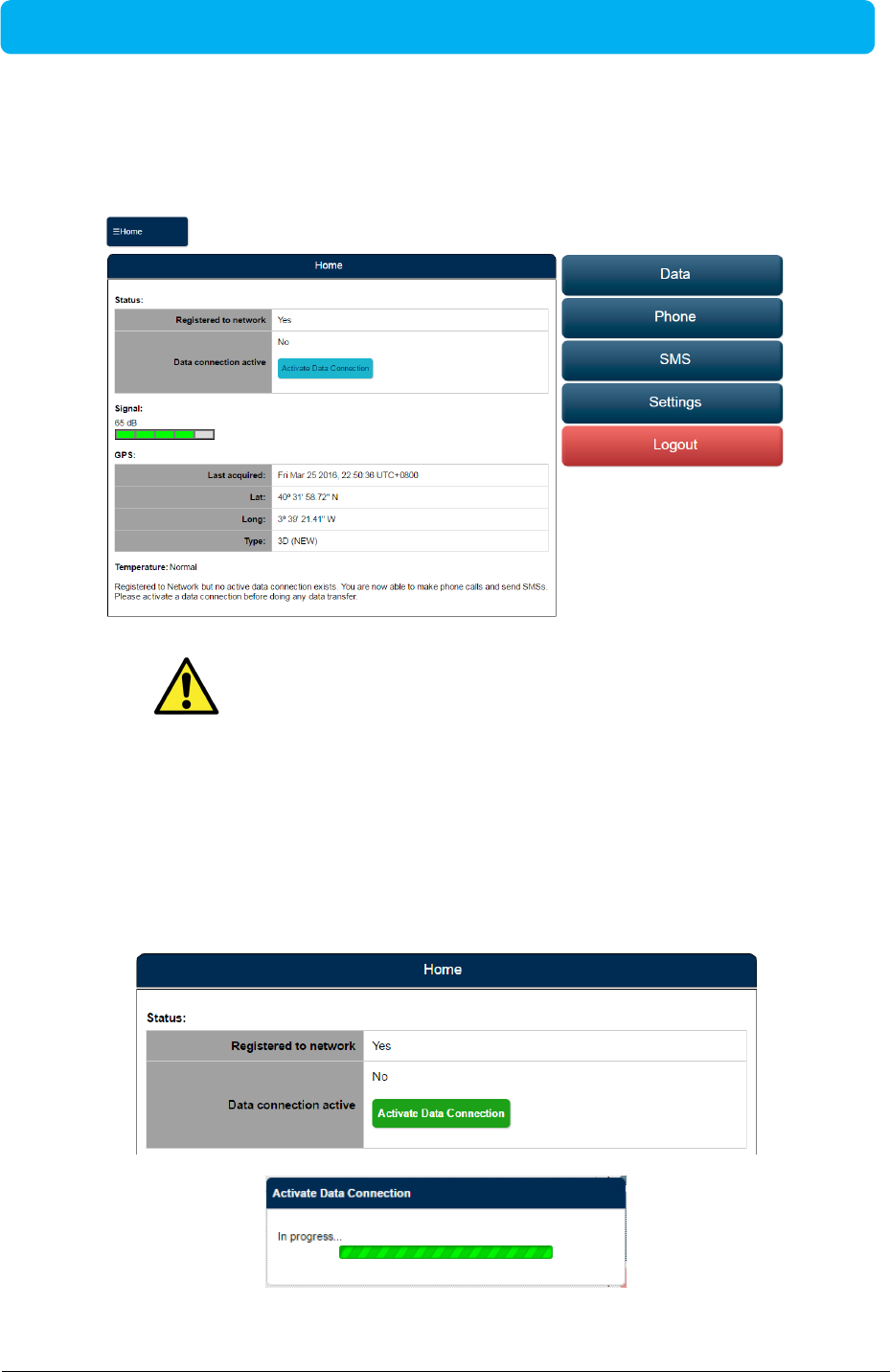 To activate the PDP context for browsing internet, click “Activate Data Connection”. The