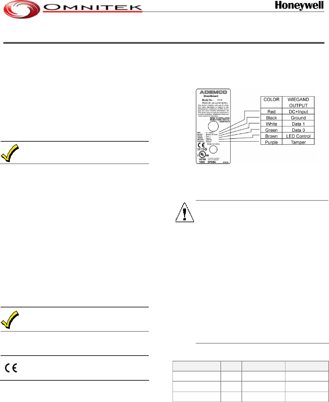 ADEMCO OmniTek OMNISMART Contactless Smart Card RFID Reader User Manual OS Series Installation Manual Revision 1