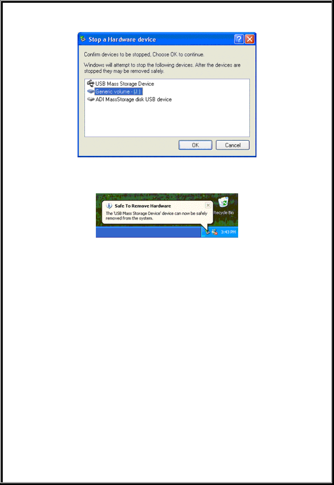 disk before remove it form PC. When you copy files from or to ADI USB Drive, operation