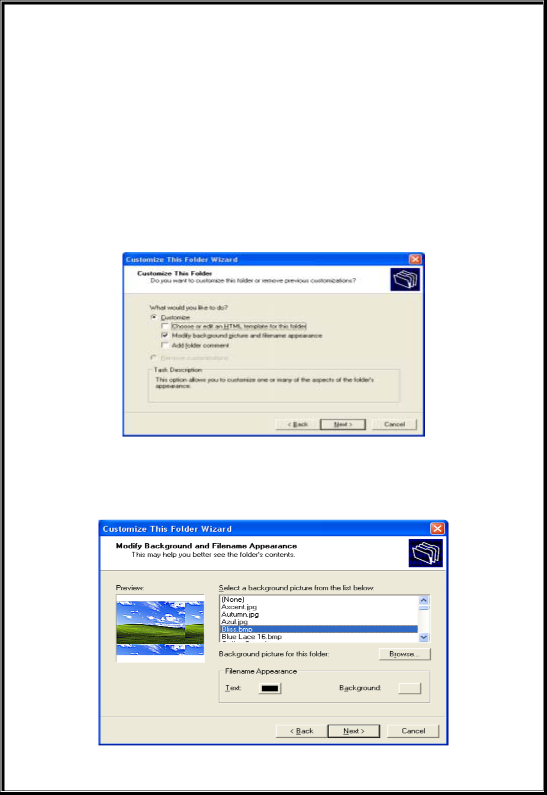 own background by clicking [Browsing] button. Click [Next] to enable your settings.