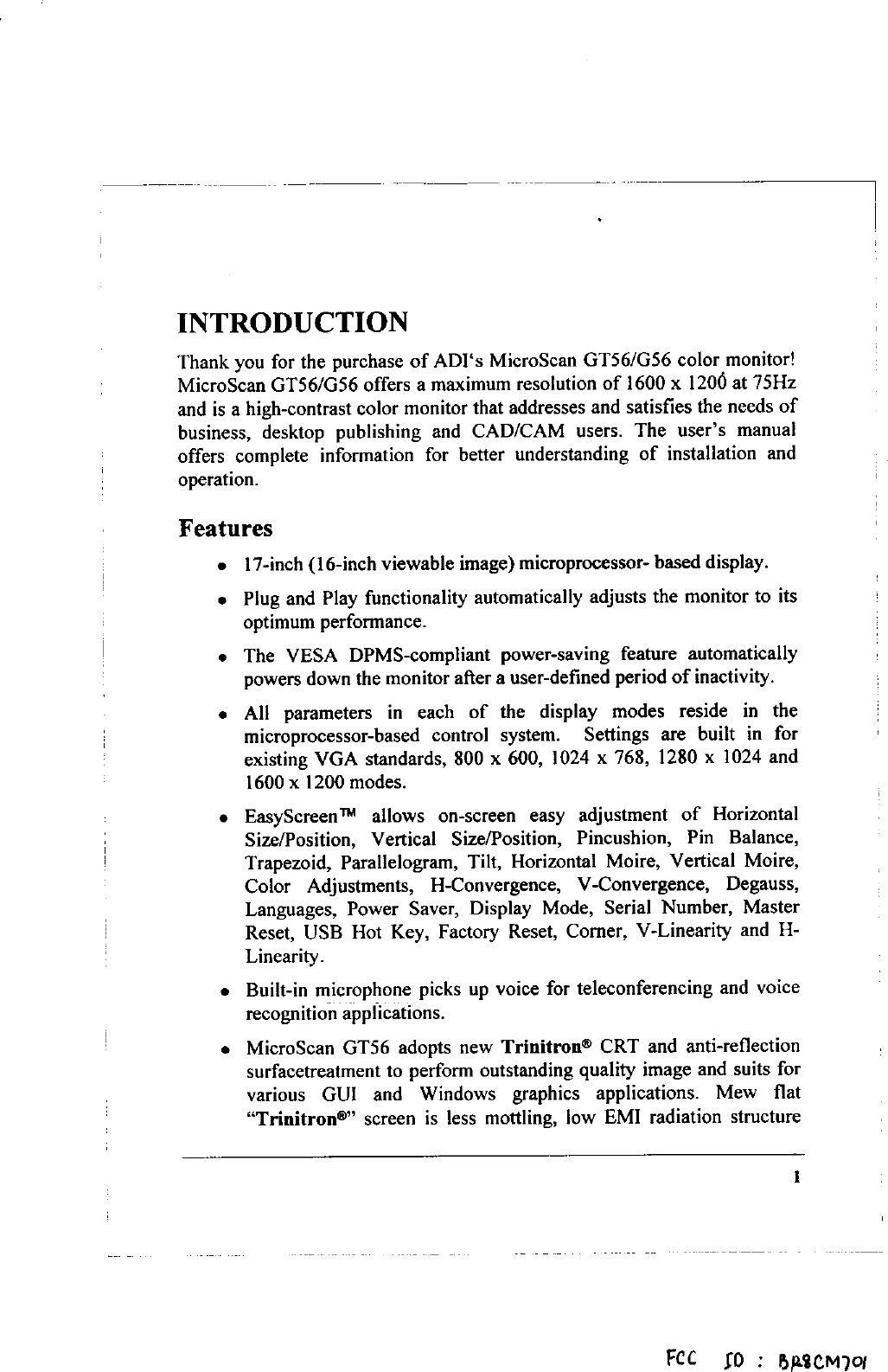 ADI CM701 17" Color Monitor, 1600 X 1200 User Manual 28128