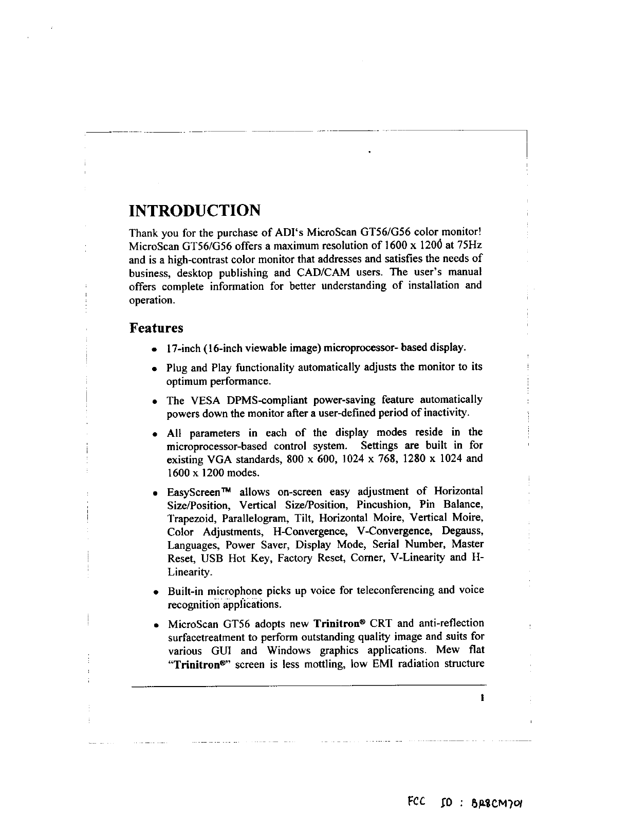 ADI CM701 17" Color Monitor, 1600 X 1200 User Manual 28128