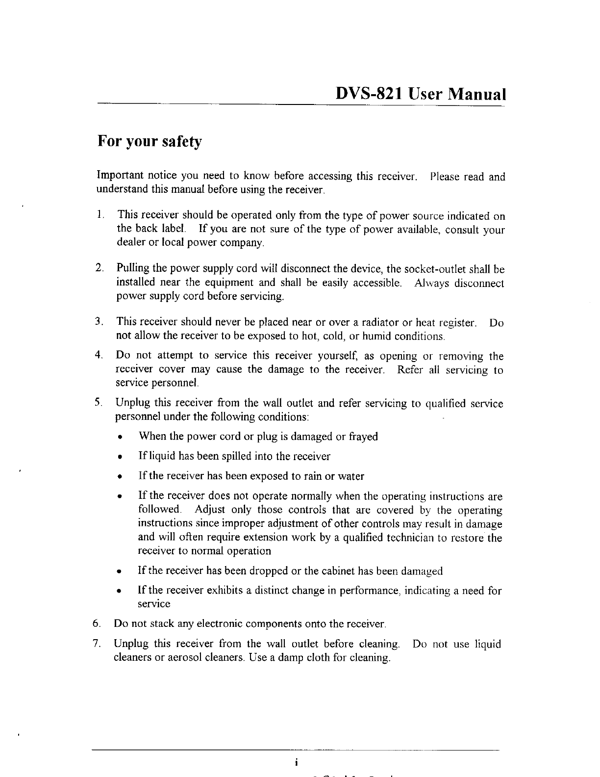 DVS 821 User Manual HTML Version
