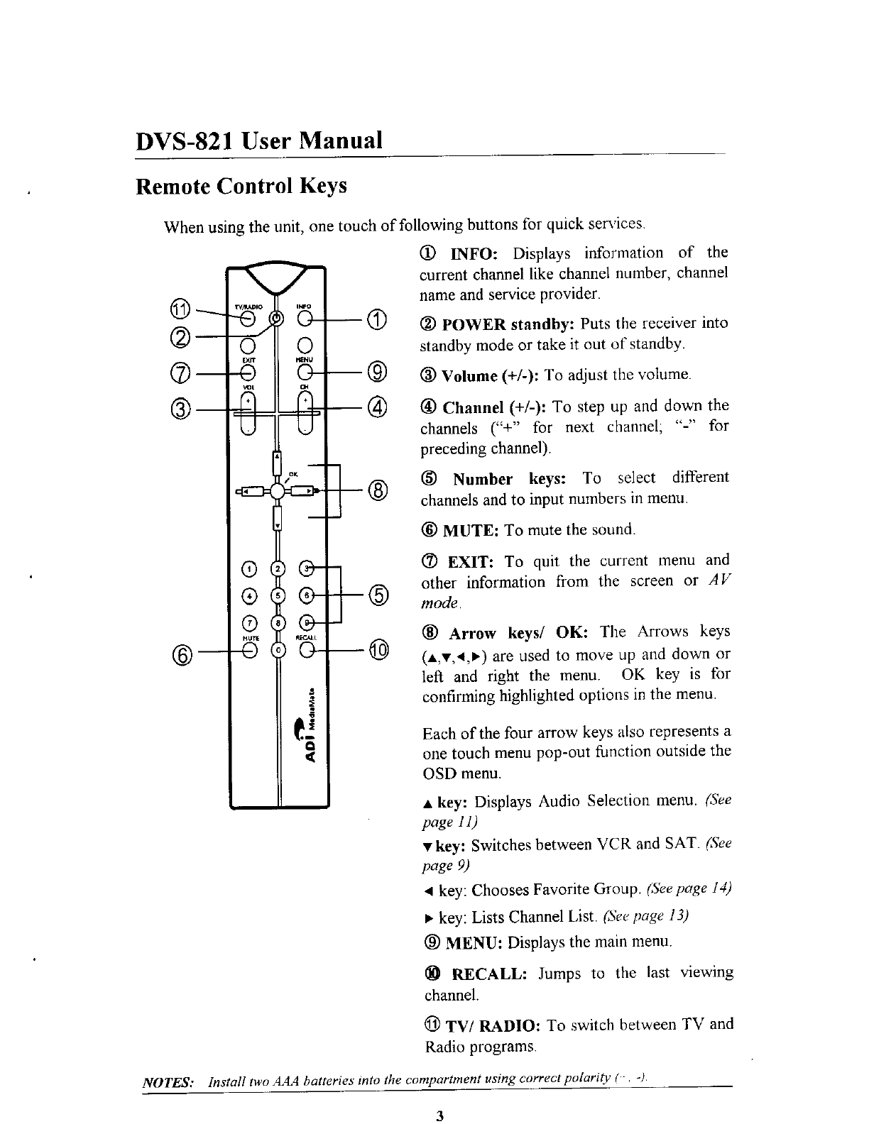 ADI DVS-821 Satellite Receiver User Manual 8