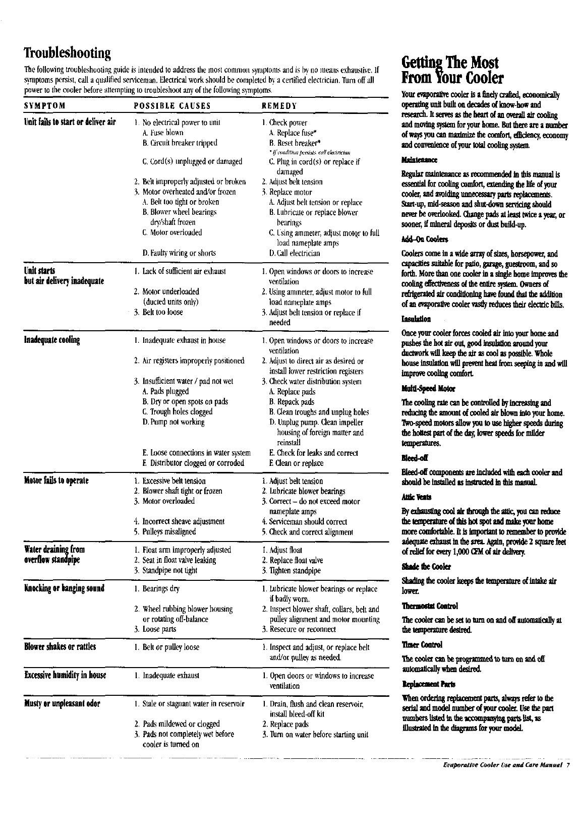 Evaporative Cooler Use and Care Manual 7