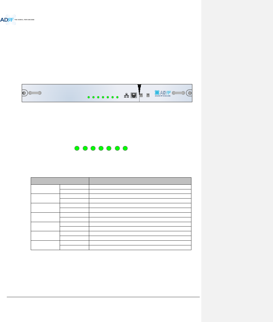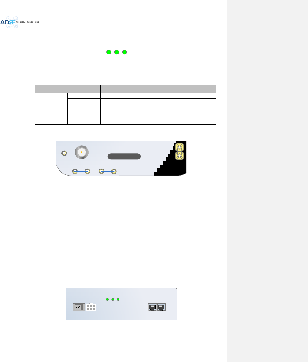 ADX DAS has the following LEDs on the front of the RU PSU as shown below in Figure 3-33.