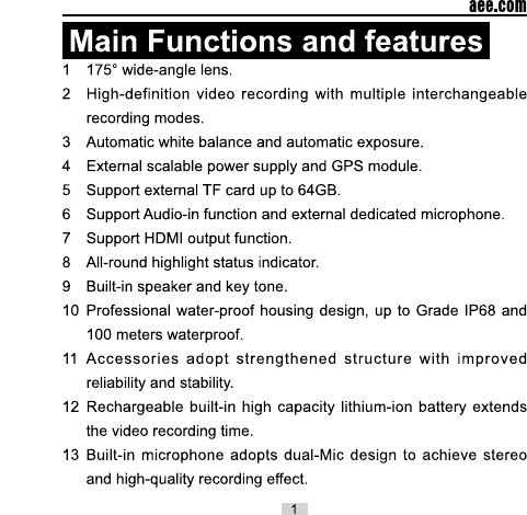 AEE Technology AEE50510001 ACTION CAMCORDER User Manual YVV AEE50510001 FCC Usermanual