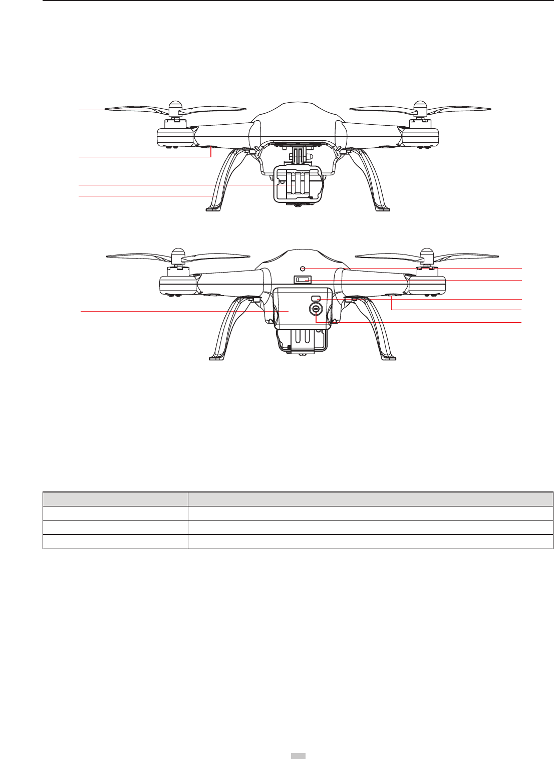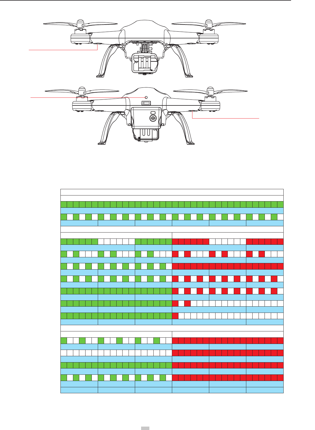 Above indicator descriptions refer to common LED indicator states. For specic details, please refer to “Prepare the Quadcopter” in section 2.3 Flight Indicators.