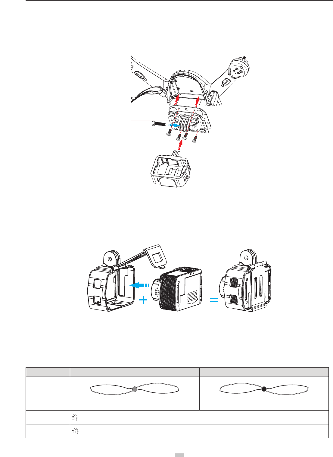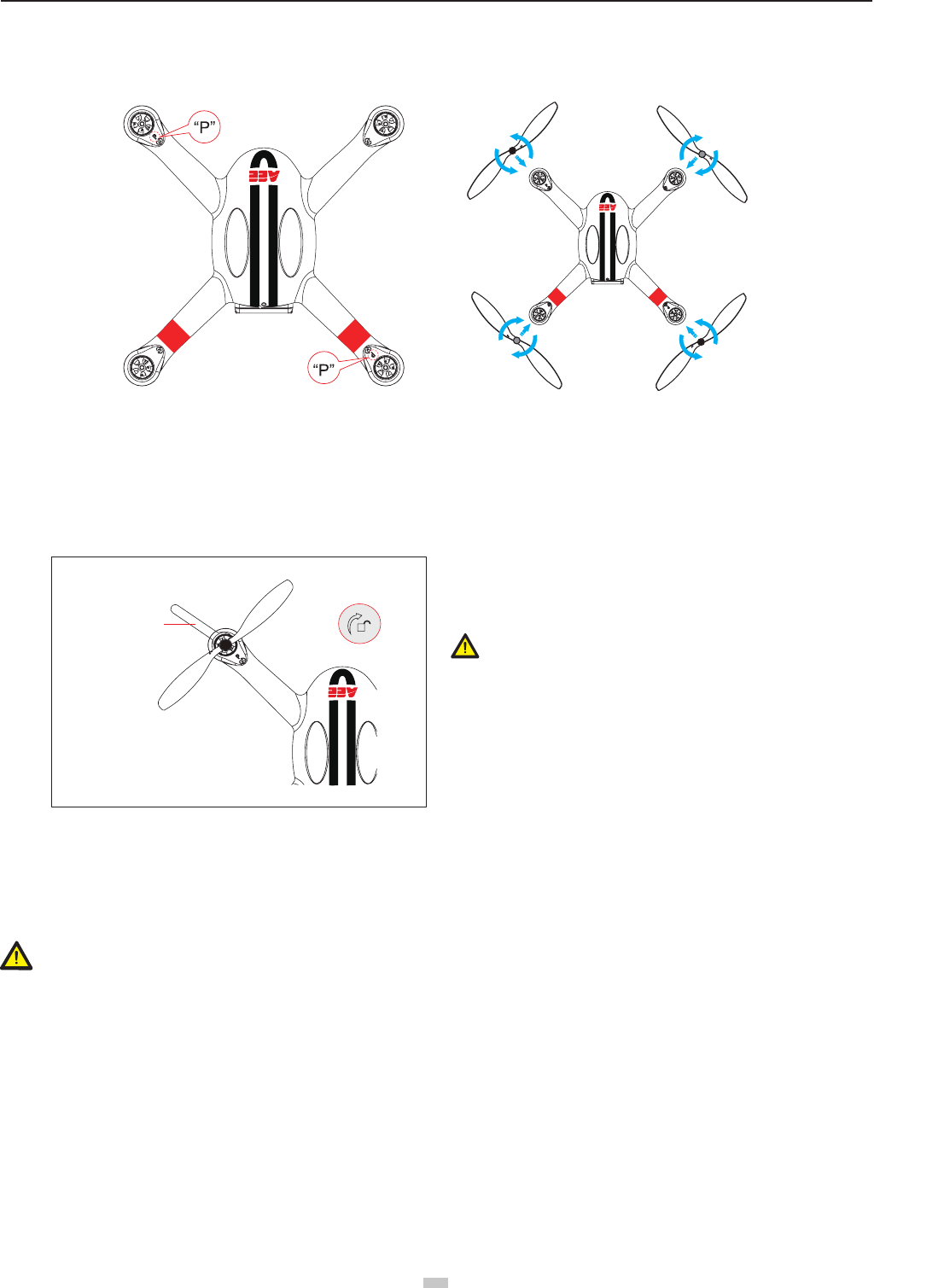 (1) When installing the propellers, rotate the propellers strictly in the lock direction specied by the mark, and DO NOT apply too much force in order to avoid