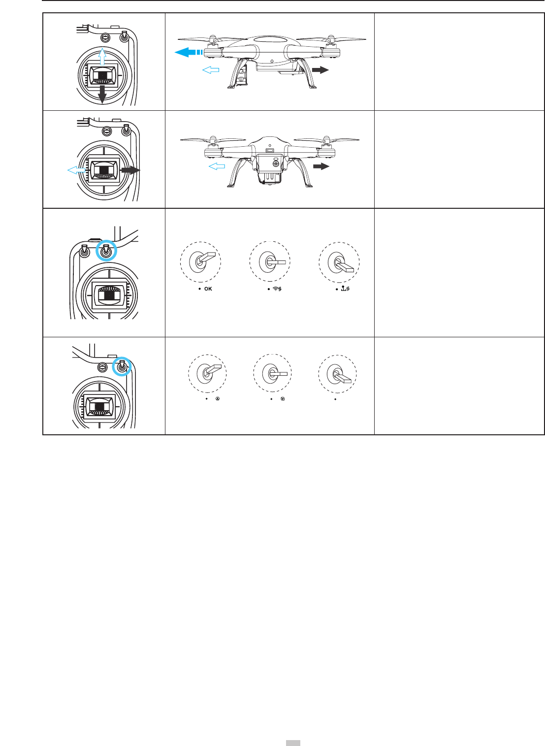 During low-Power automatic landing, you can regain control of the Quadcopter by switching the ight mode. However, do not do so repeatedly, as it may: