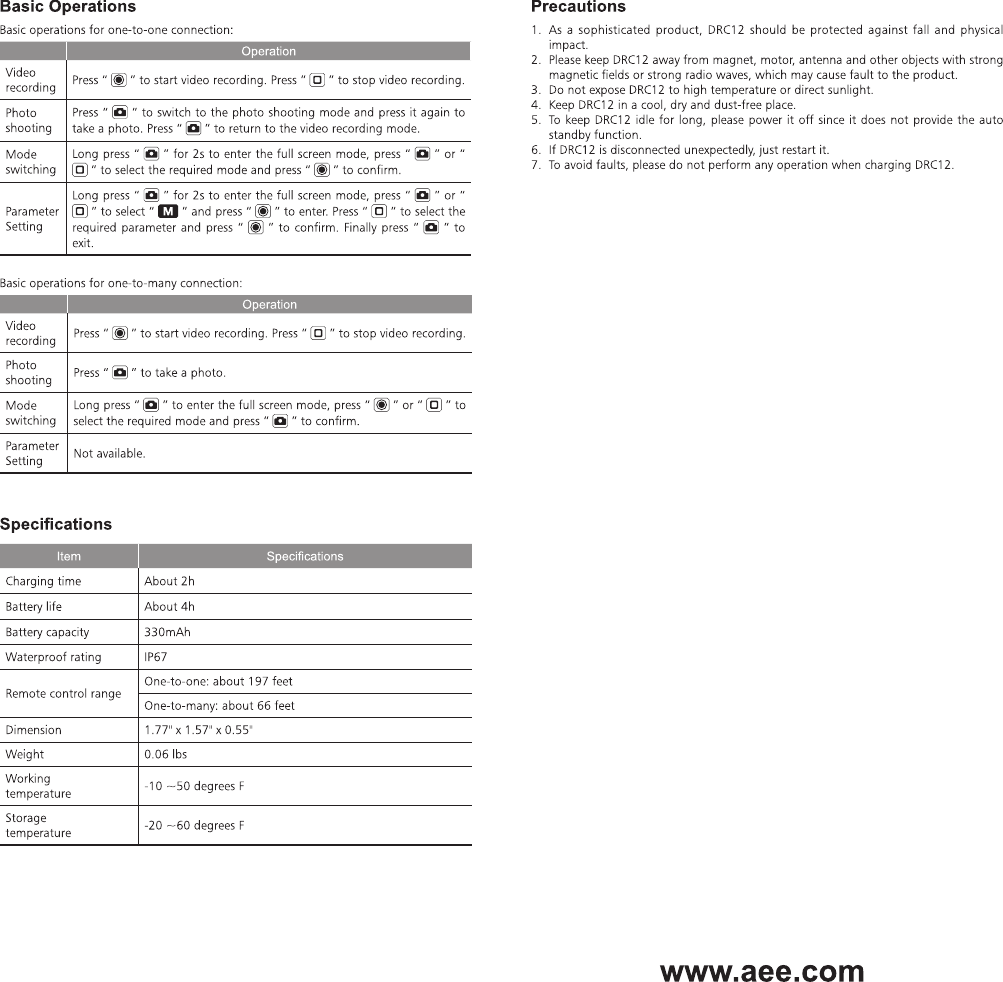 AEE Technology AEEDRC12001 Action Camcorder User Manual